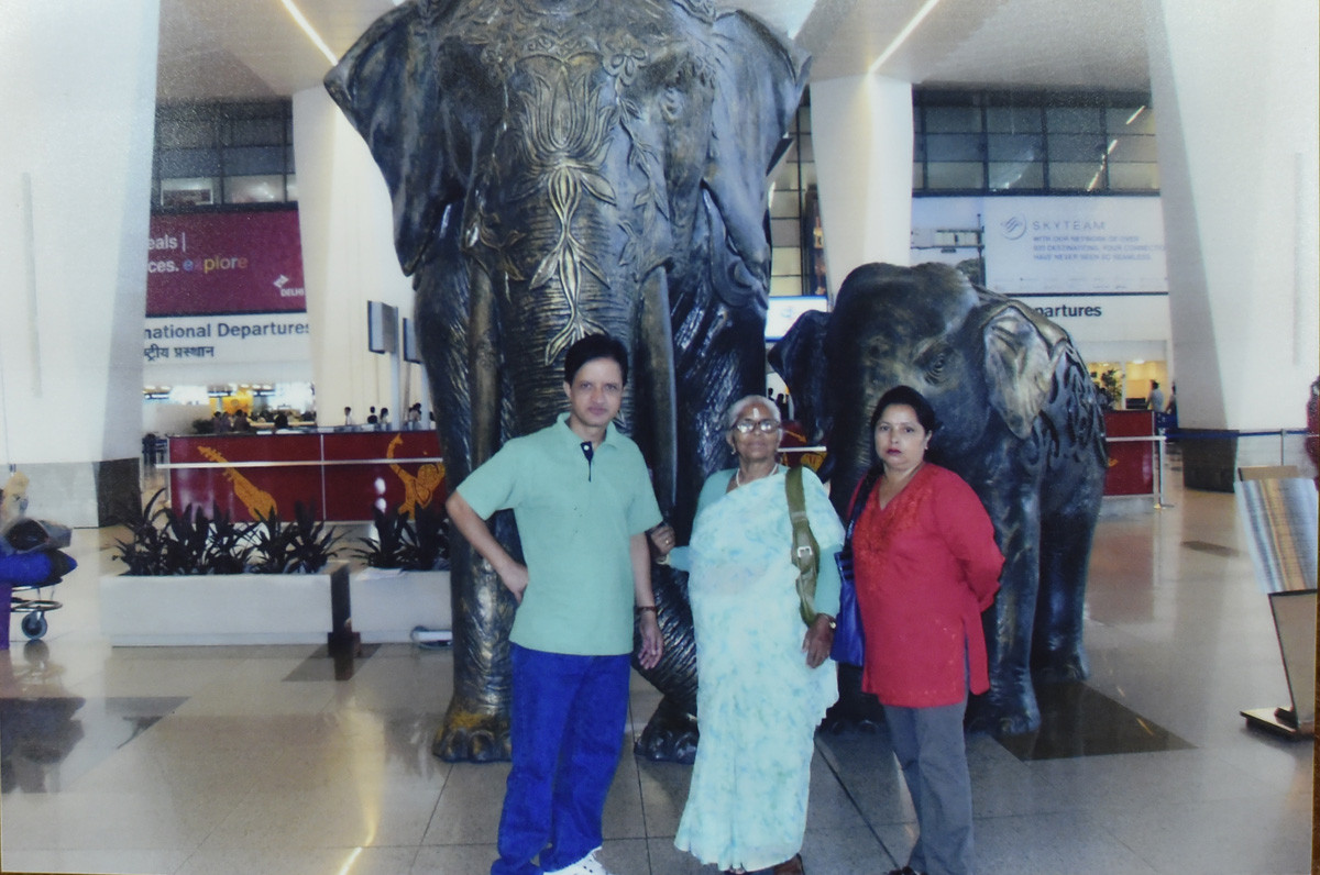 कान्छी छोरी र ज्वाँइसँग भारतमा। तस्बिरः मित्रकुमारीको पारिवारिक संकलन