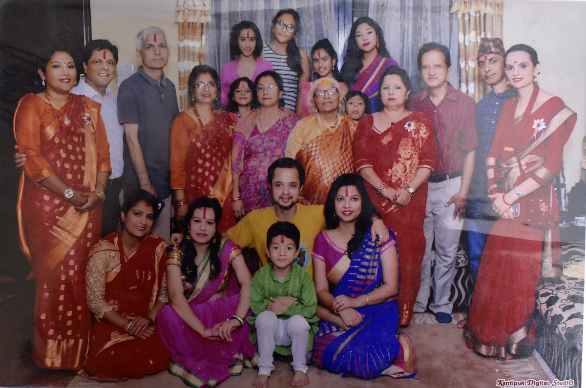 मित्रकुमारी, उनका श्रीमान शोभाकर र अधिकारी परिवार। तस्बिरः मित्रकुमारीको पारिवारिक संकलन