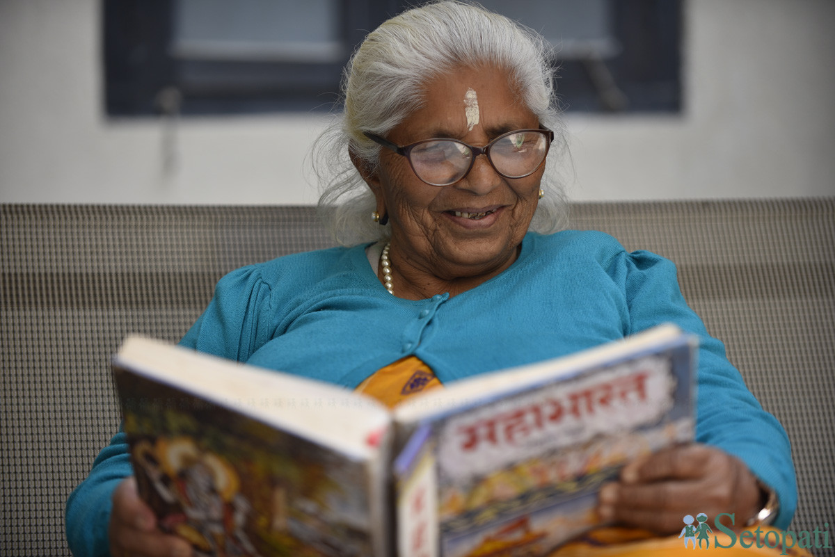 महाभारत पढ्दै मित्रकुमारी। तस्बिरः नारायण महर्जन/सेतोपाटी