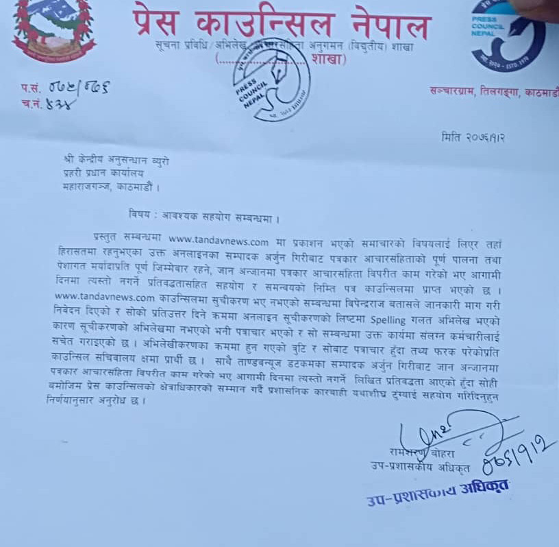 गिरीले ताण्डवको चैत २२ गतेको अंकमा ‘ठग! बदमास वीपेन्द्रराज बतास’ शीर्षकको समाचार लेखेका थिए। सोही समाचार ताण्डवन्युज डटकममा प्रकाशित भएको थियो।