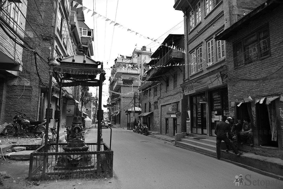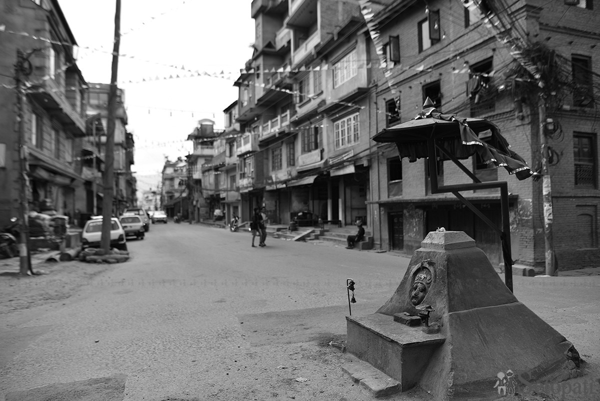 माथिल्लो टोलमा सडकबीच भैरव मन्दिर। तस्बिर: नारायण महर्जन/सेतोपाटी