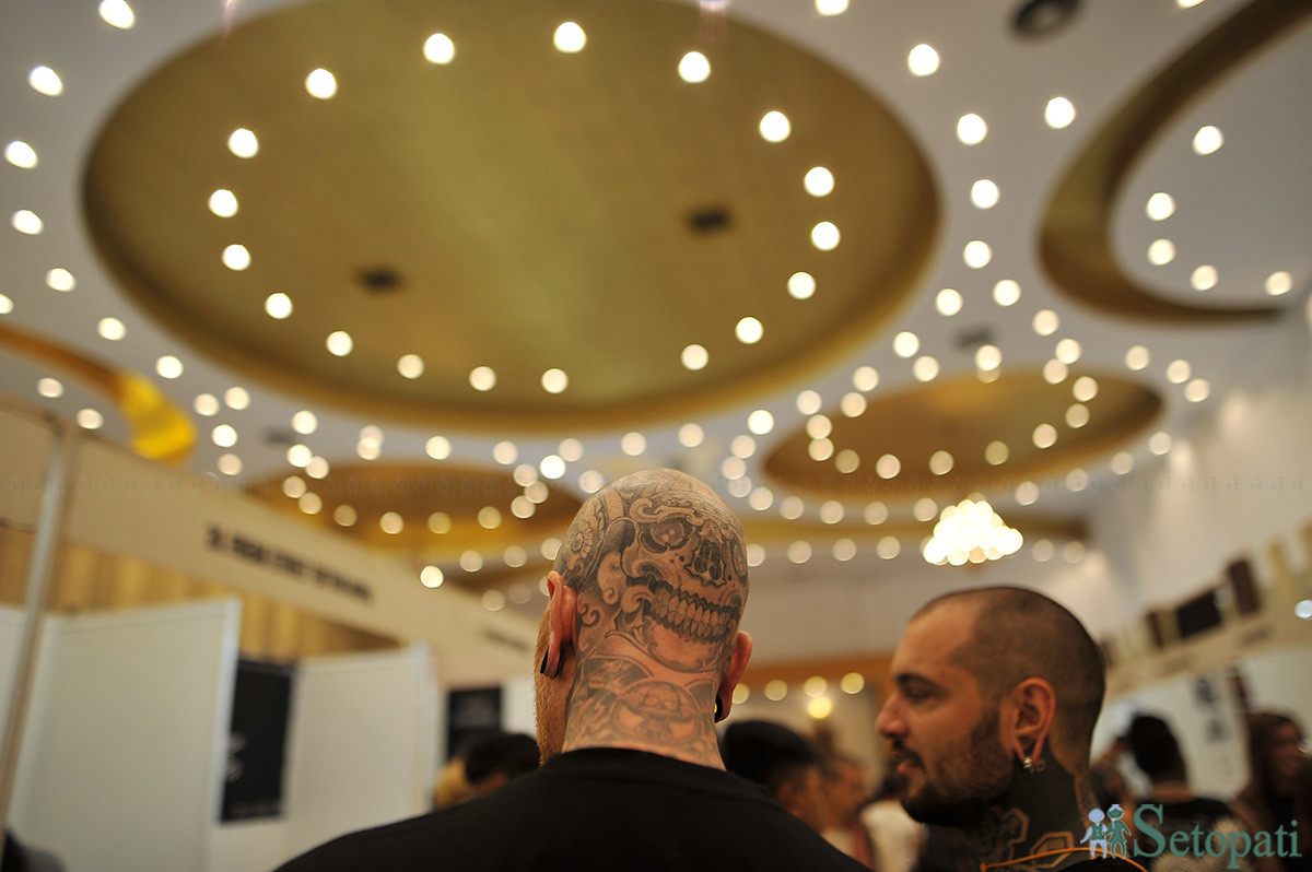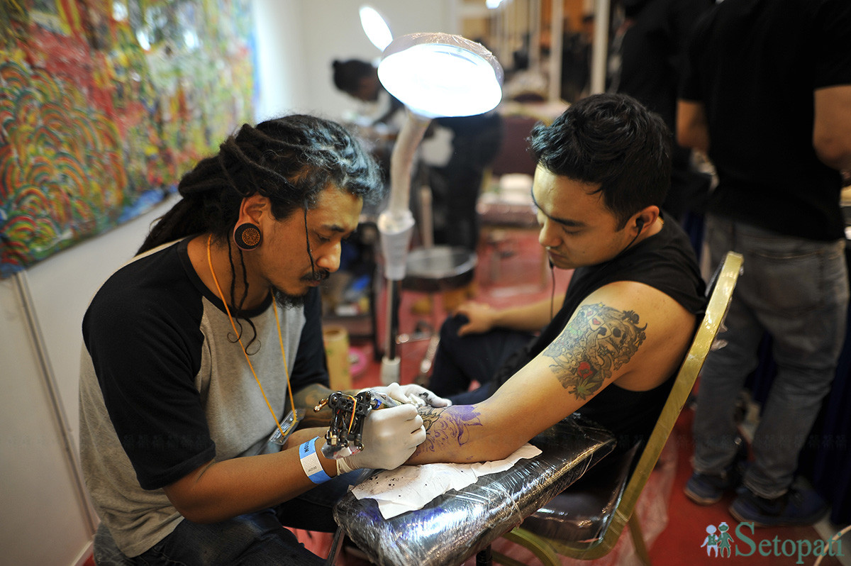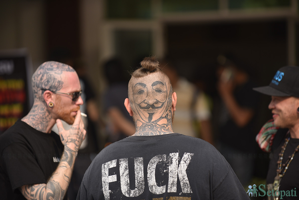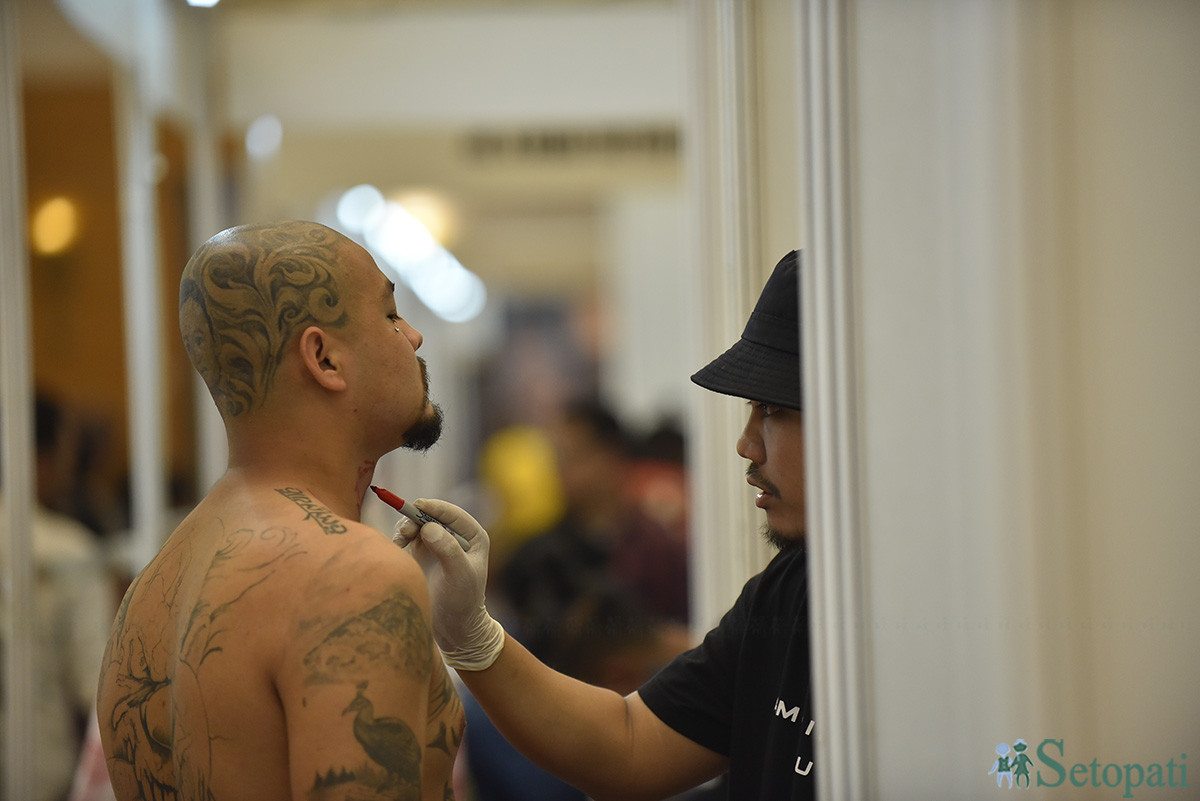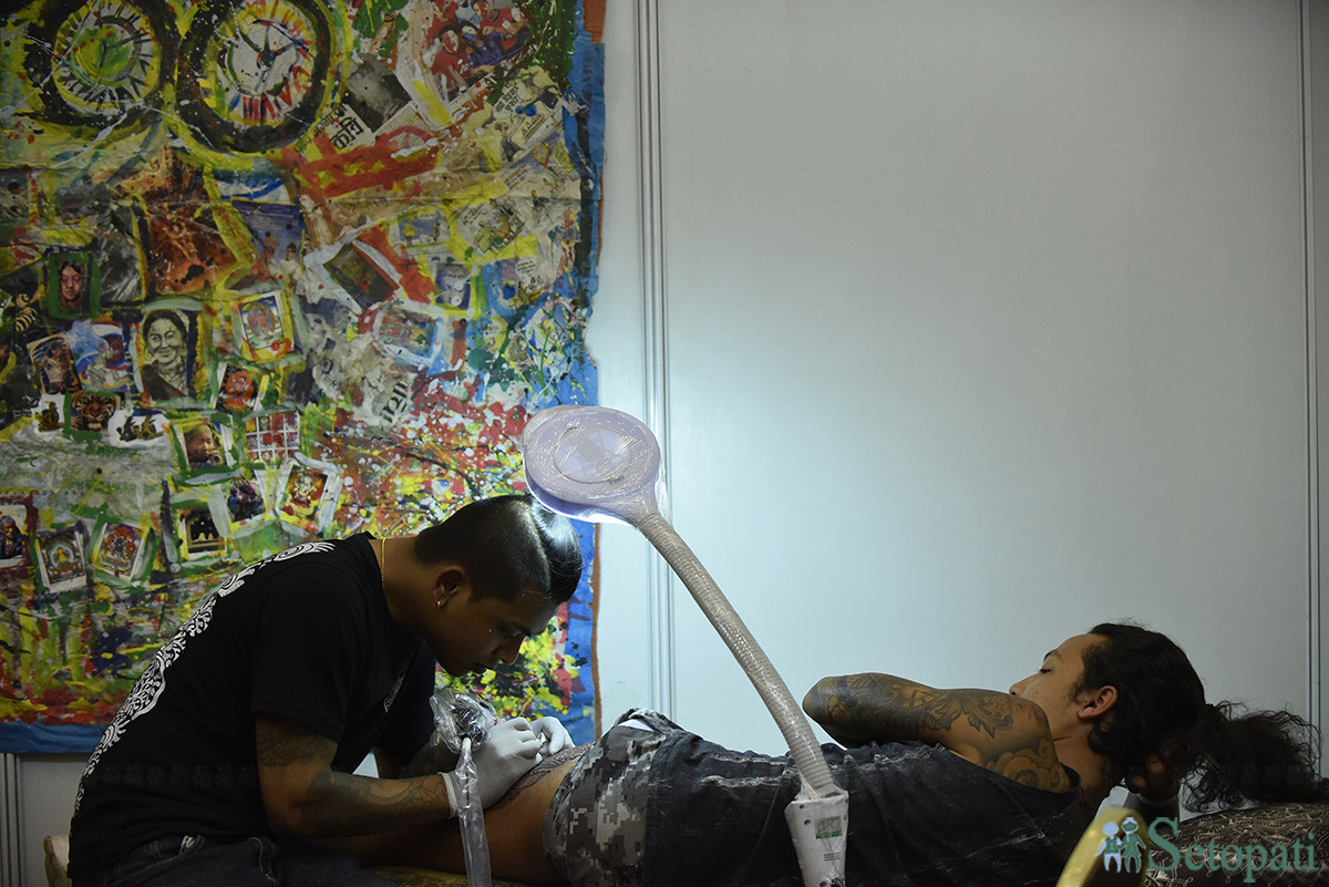 अनुहारमा ट्याटु खोपाएकी एक विदेशी नागरिक। तस्बिरः नारायण महर्जन