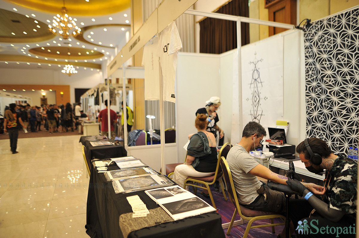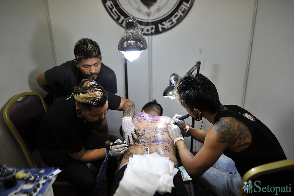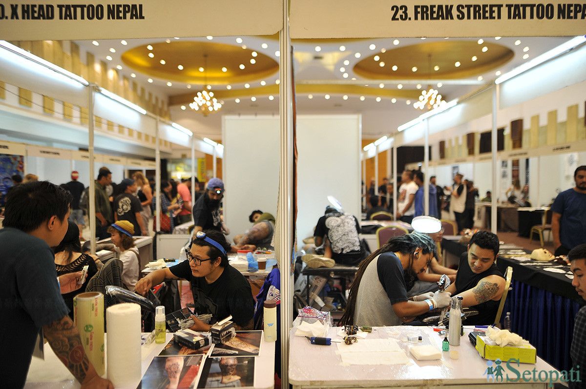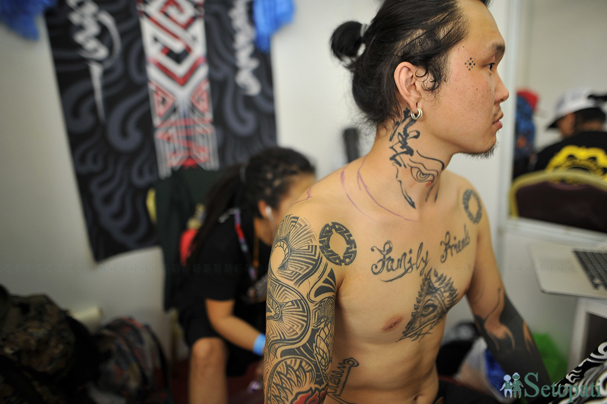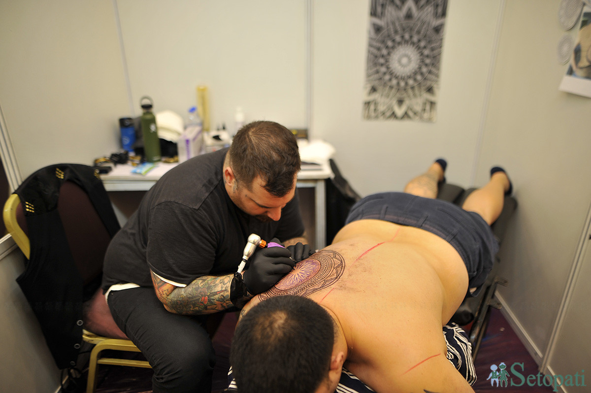 अनुहारमा ट्याटु खोपाएकी एक विदेशी नागरिक। तस्बिरः नारायण महर्जन