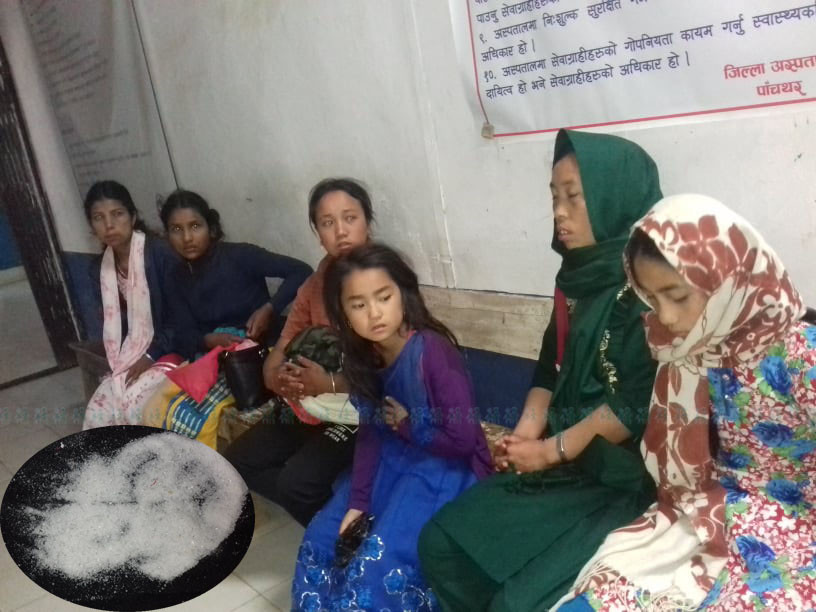 एक गैर सरकारी संस्थाद्वारा सञ्चालित ३ महिने ढाका वुनाई तालिममा सहभागी भएका उनीहरूलाई आइतबार बिहान खुवाइएको खाजा(थुक्पा) मा नुनमा सिसा मिश्रण गरी खाजामा लगाइएको थाहा भएपछि उनीहरूलाई संस्थाकै पहलमा बुधबार अस्पताल भर्ना गरिएको हो ।