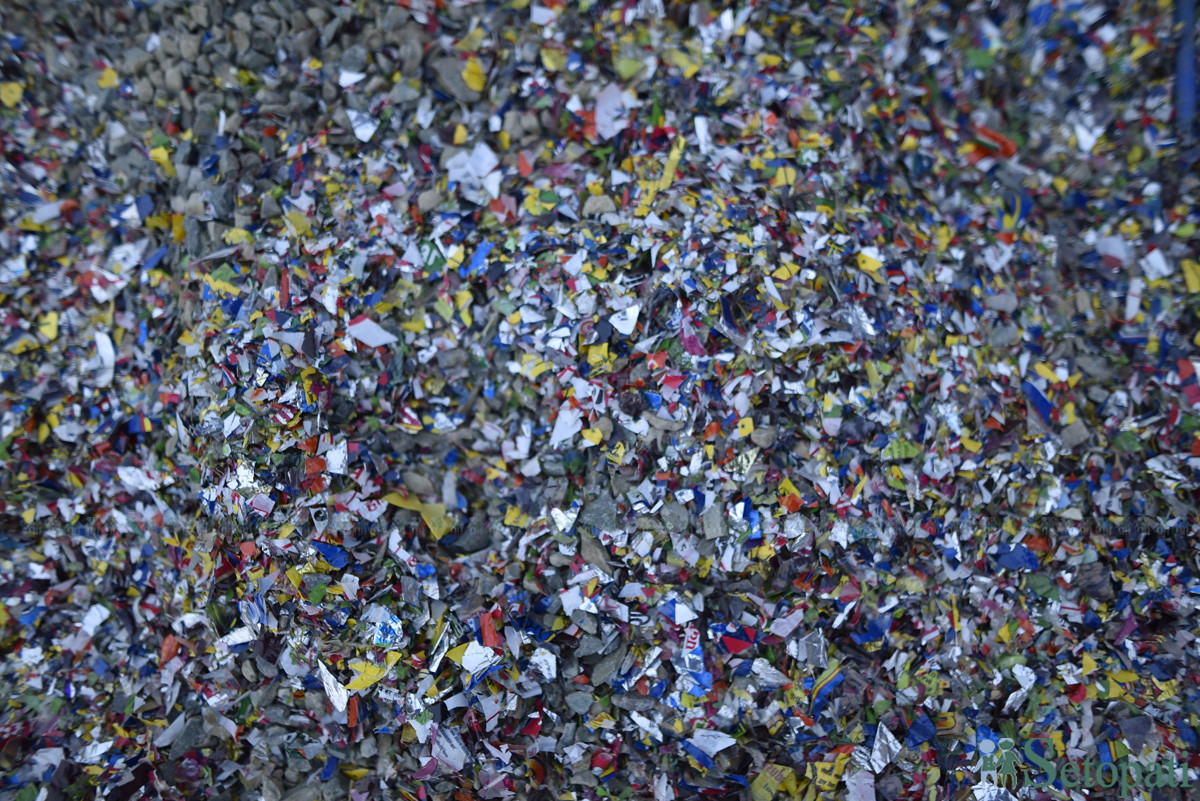 दुई–तीनपटक मेसिनमा हालेर भए पनि उनीहरूले प्लास्टिक मसिनो पारे र ती टुक्रा पोखरा ल्याए।