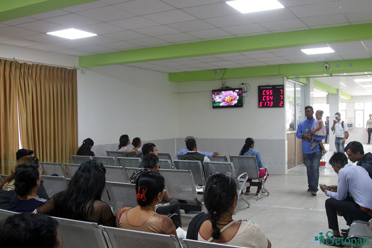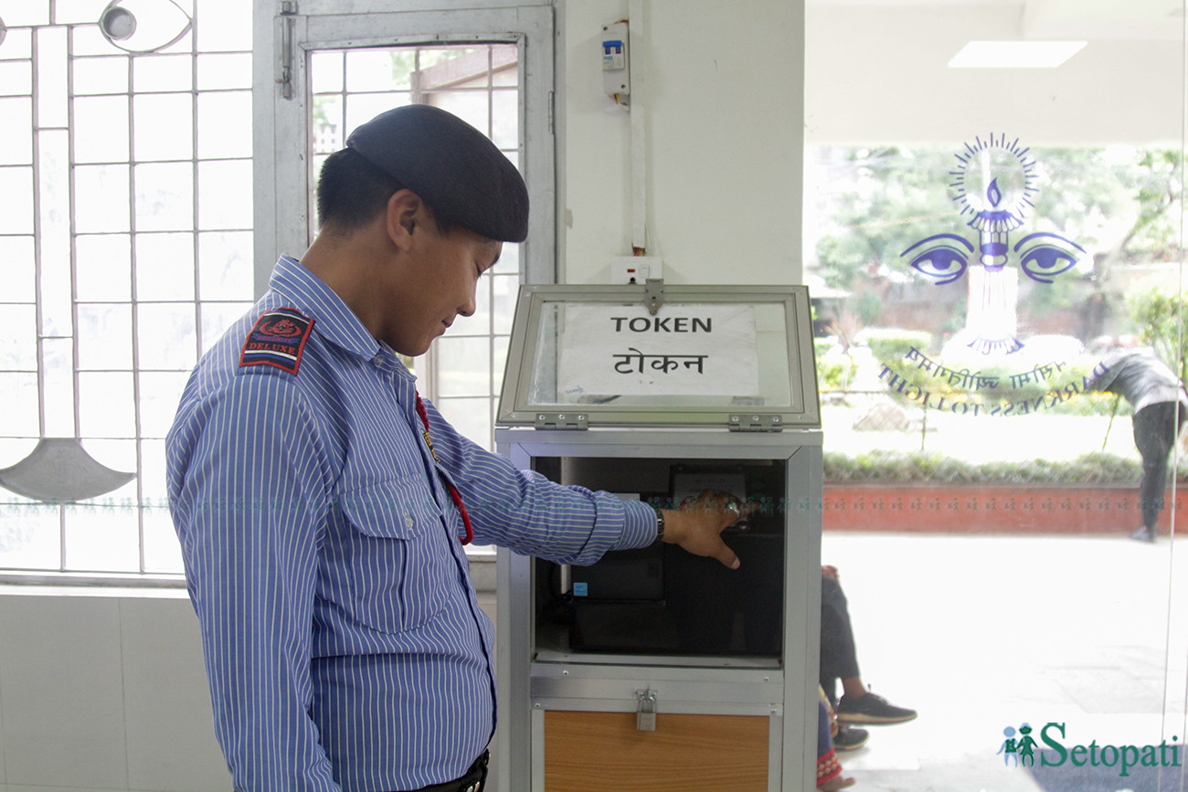 मान्छेहरू काउन्टरमा झुम्मिएर ठेलमठेल गर्दै छैनन्। बरू टोकन लिएर कुर्सीमा बसेका छन्, भित्तामा राखिएको टिभी हेर्दै, आफ्नो पालो कुर्दै।
