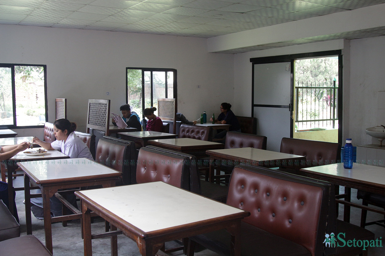 बगैंचा नजिकै सफा क्यान्टिन छ। क्यान्टिनमा आरामदायी बेन्च-कुर्सी छन्। हात धुने ठाउँ छ। बिरामी, कर्मचारी र अरूलाई खाजा सुविधा होस् भनेर केही महिनाअघि यो क्यान्टिन खोलिएको उनले बताए।