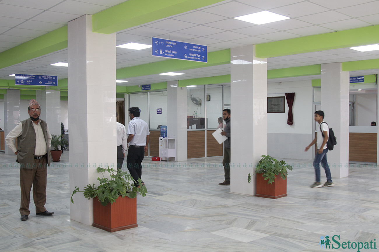 अस्पतालको भुइँतलाले रूप फेरेको पनि पाँच महिना मात्र भयो। माथिल्लो तला, भर्याङ, गल्ली र चर्पी पनि सुग्घर छ। बगैंचा व्यवस्थापनदेखि सरसफाइसम्मको जिम्मा निजी कम्पनीहरूलाई छ।