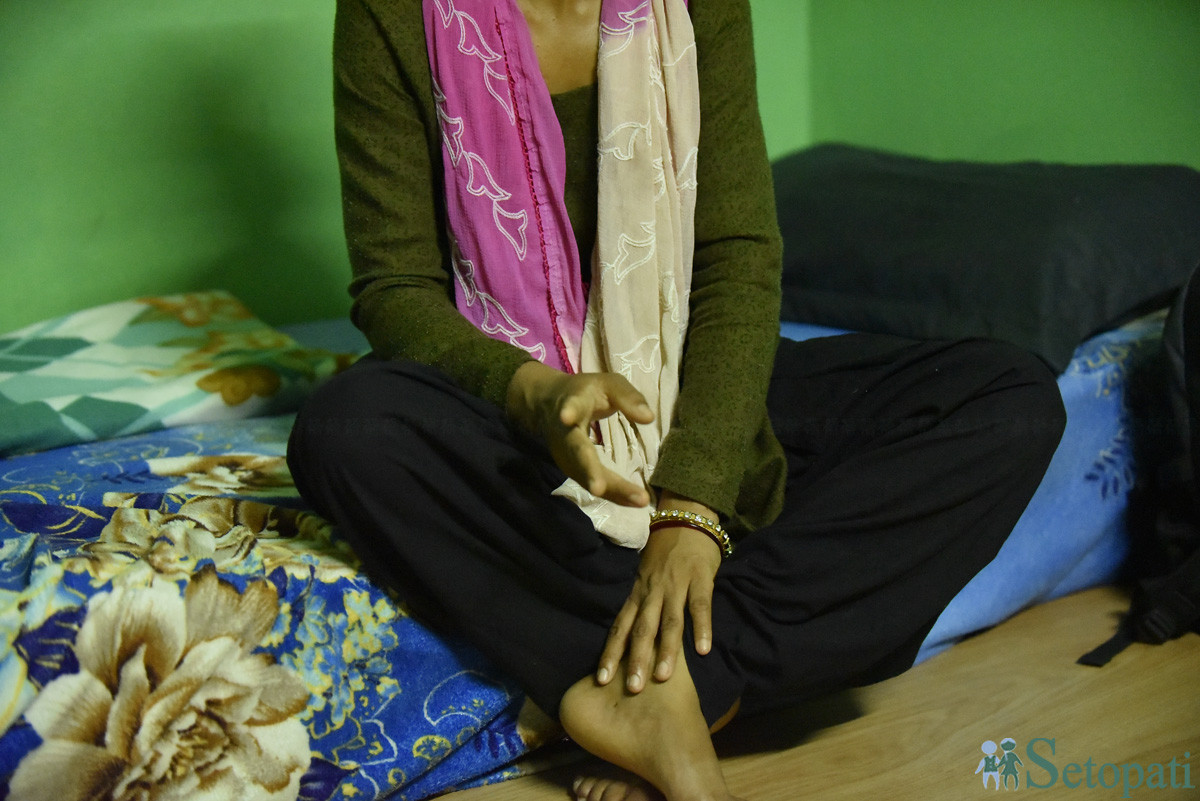 ‘काम थियो दिनभर घर सफा गर्ने। बूढाबूढीको ज्यान मालिस गर्ने। र, राति केटामान्छेको कोठामा सुत्न जानुपर्ने,’ उनले भनिन्, ‘खाना दिनभरीमा एउटा रोटी पाइन्थ्यो, त्यसले भोक मर्दैनथ्यो। उनीहरू त मिठोमिठो खान्थे।'