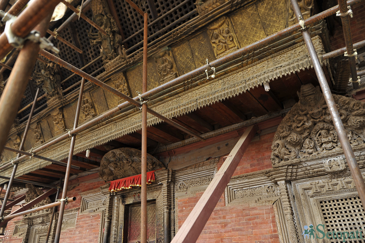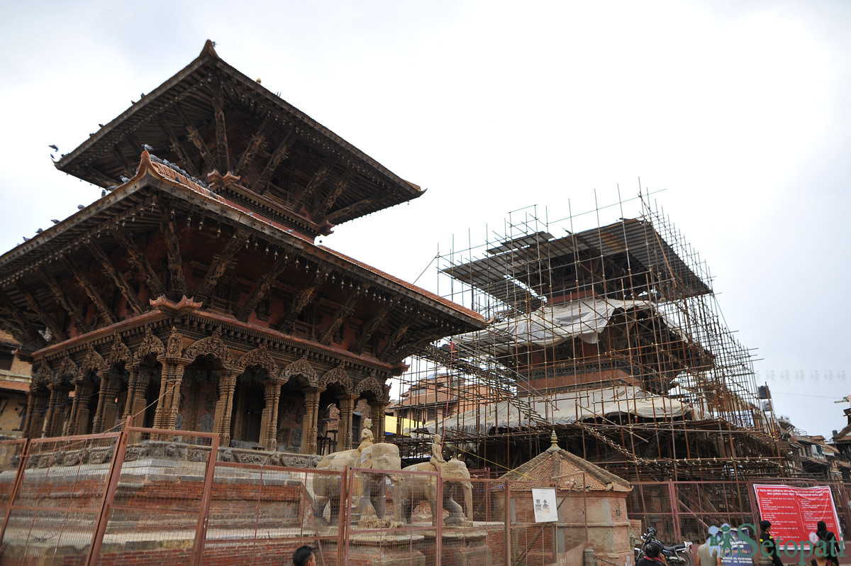 भुइँचालोको दुई वर्षअघि मात्र छानो मर्मत गरिएको र अधिकांश काठ काम लाग्ने देखिएको रञ्जितकारले बताए। उनका अनुसार सर्सर्ती हेर्दा १५ देखि २० प्रतिशत मात्र नयाँ काठ प्रयोग गर्नुपर्नेछ। मन्दिर पुनर्निर्माण बढीमा दुई वर्षमा सकाउने लक्ष्य छ।