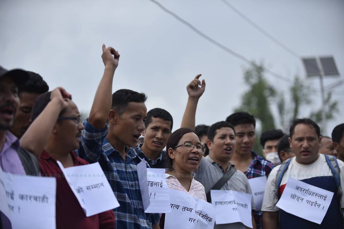 विमला तामाङलाई न्याय दे!, ज्यानमाराहरूलाई धरौटीमा छोड्न पाइँदैन, अपराधीहरूलाई छोड्न पाइँदैनजस्ता प्लेकार्ड बोकेर उनीहरूले प्रदर्शन गरेका हुन्।
