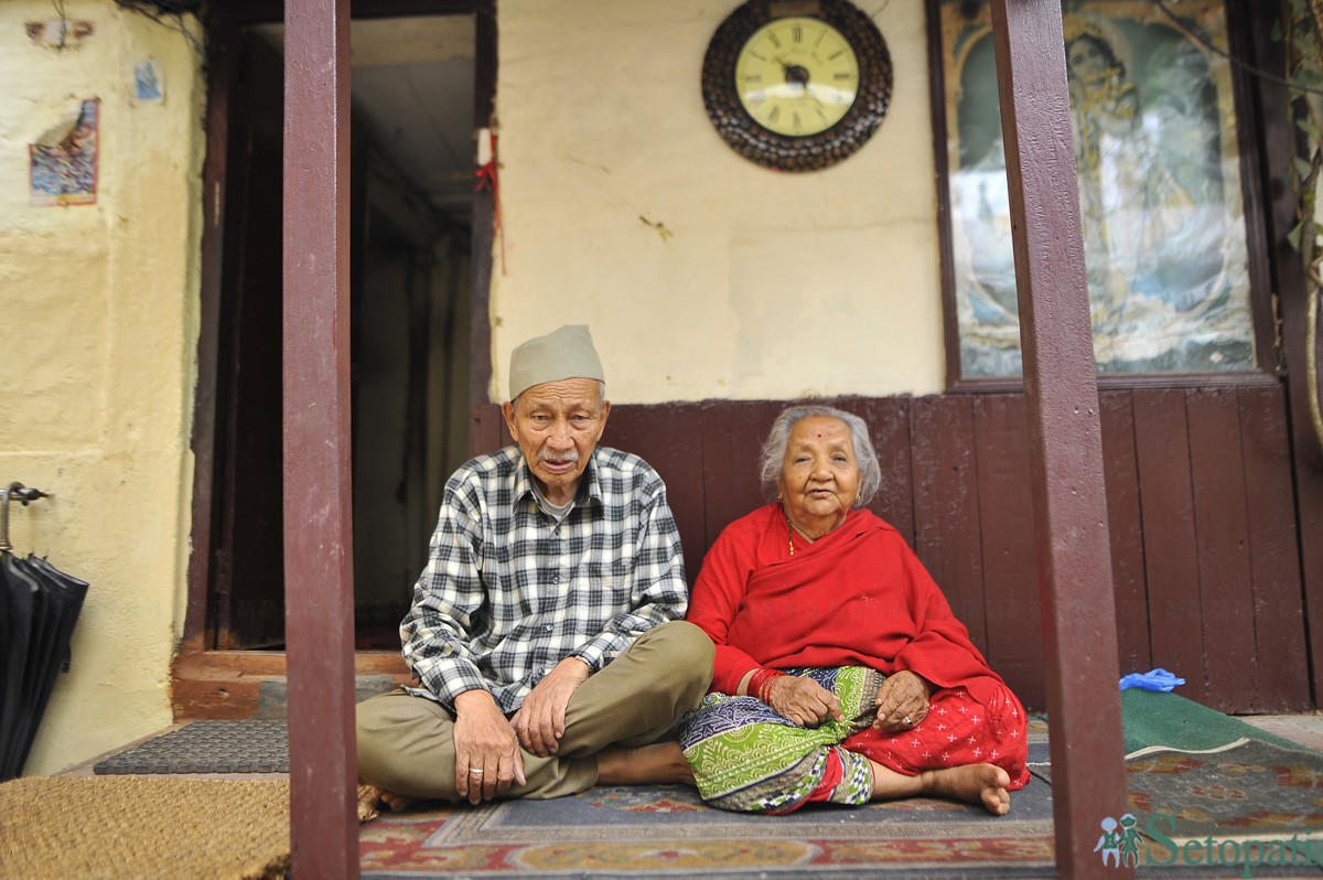 राधादेवी जोशी र उनका श्रीमान सत्यमोहन। तस्बिरः नारायण महर्जन/सेतोपाटी