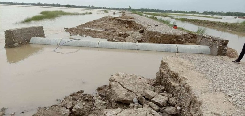 बाढीले सडकमा बनाइएको एलाइमेन्ट, ड्रेनेज, कल्भर्ट, एरिगेशन आउटलेटहरू पूर्णरूपमा क्षतिग्रस्त भएको छ।
