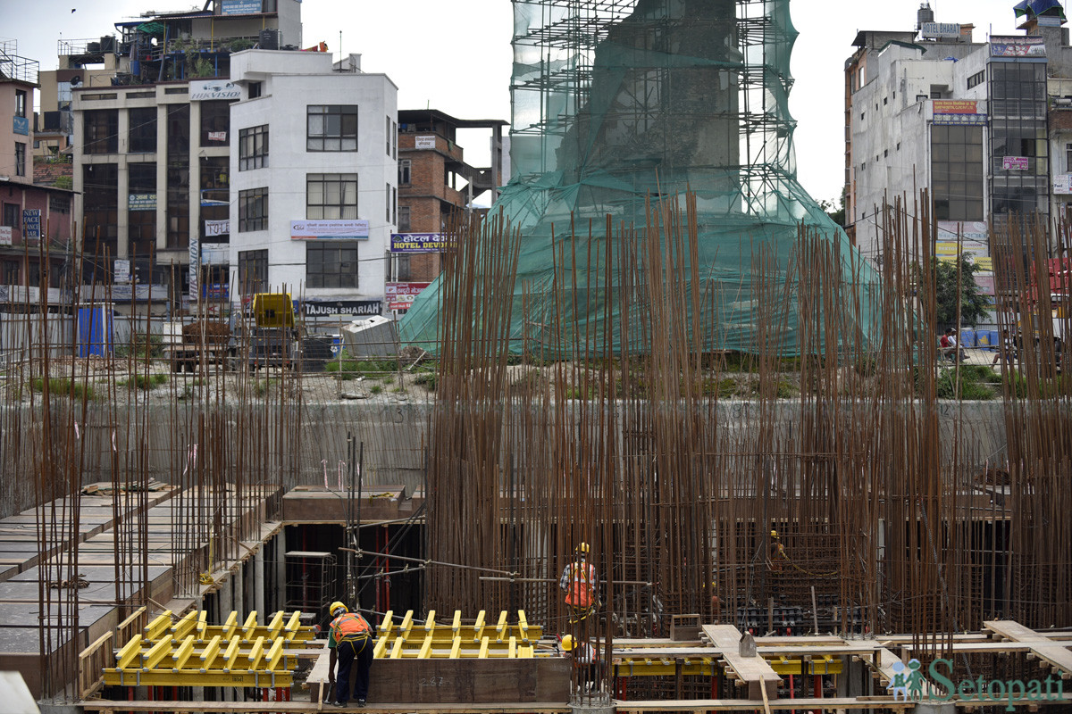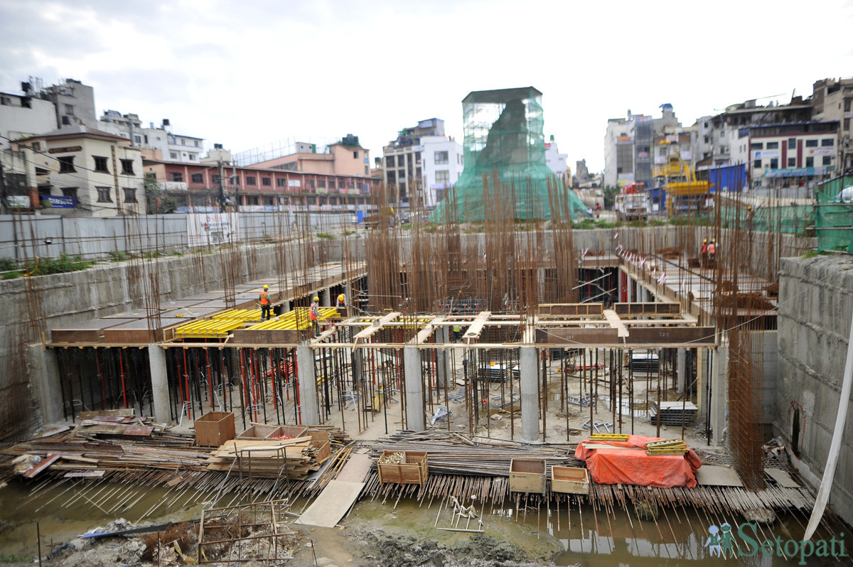 निर्माणमा अवरोध नहोस् भनेर चारैतिर जस्तापाताले बारेर एकतर्फ मात्रै बाटो खोलेर निर्माण भइरहेको छ। अहिले धरहराको सबैभन्दा महत्वपूर्ण भाग अर्थात् जग हाल्ने काम सकिएको उनले बताए।