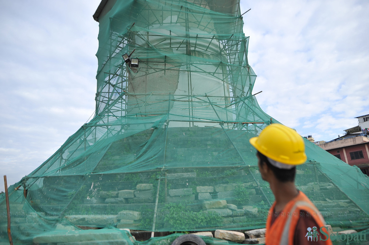 'धेरै समय लाग्ने जगको भाग हामीले सक्यौं। दुई मिटर ढलान गरेका छौं,' उनले भने, 'धरहराको आयातन तलबाट माथि पुग्दा विस्तारै घट्दै गएको छ। यसैले त्यस्तै निर्माण गर्न चारैतिरबाट २ डिग्रीमा ढल्काउँदै बनाउनुपर्छ। त्यस्तो भएन भने माथि समस्या हुन्छ। होसियारीपूर्वक बनाउन सजग छौं।'