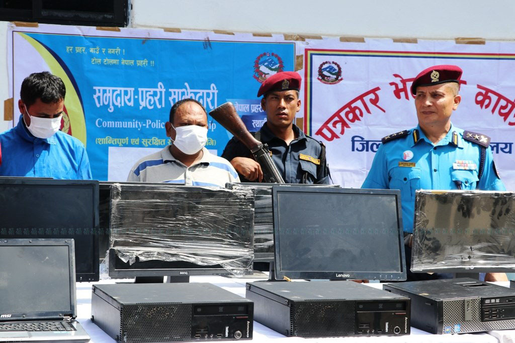 प्रहरीले काठमाडौं ११ घर भई हाल पोखरा १० मा बस्दै आएका किशोर थापालाई पक्राउ गरेको हो। प्रहरीले उनलाई ९ वटा कम्प्युटर, ४ ल्यापटप र अन्य चोरीमा संलग्न सामानसहित पक्राउ गरेको हो।