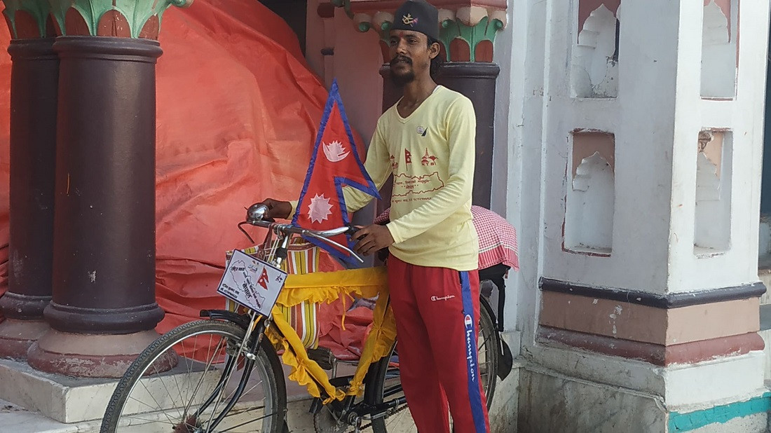 रंजित भन्छन्, ‘तराई, पहाड र हिमाली समुदायबीच भाइचाराको सन्देश दिन साइकल यात्राको सुरुवात गरेको छु।’