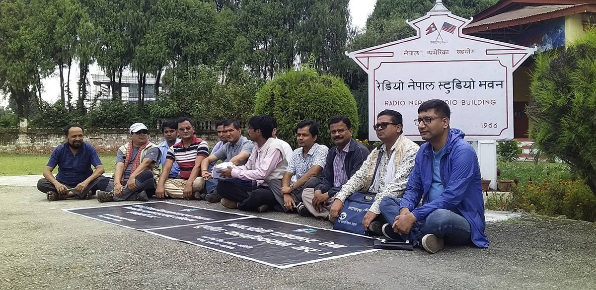रेडियो नेपालको प्रदेश प्रशारण केन्द्र दिपायलबाट तीन जना पत्रकार निष्काशन गरेको विरोधमा महासंघले रेडियो नेपालको केन्द्रीय प्रसारण केन्द्रको भवनअघि सिंहदरबारमा मंगलबार धर्ना दिएको हो।