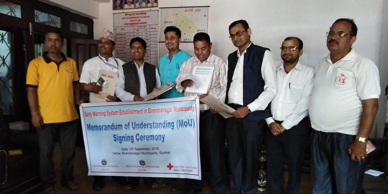 सहरी विपद् जोखिम व्यवस्थापन परियोजना, जल तथा मौसम विज्ञान कार्यालय सुर्खेत, नेपाल रेडक्रस सोसाइटी सुर्खेत र वीरेन्द्रनगर नगरपालिकाबीच समन्वय गरी बाढी पूर्वसूचना प्रणाली जडान गर्न लागिएको हो।