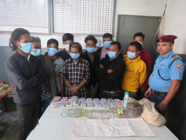प्रहरीले तास खेलिरहेका १० जना युवालाई धरानमा पक्राउ गरेको छ। मंगलबार राति ११ बजे प्रहरीले धरान १४ को मण्डप चोकबाट ८४ हजार एक सय रुपैयाँसहित युवाहरूलाई पक्राउ गरेको हो।