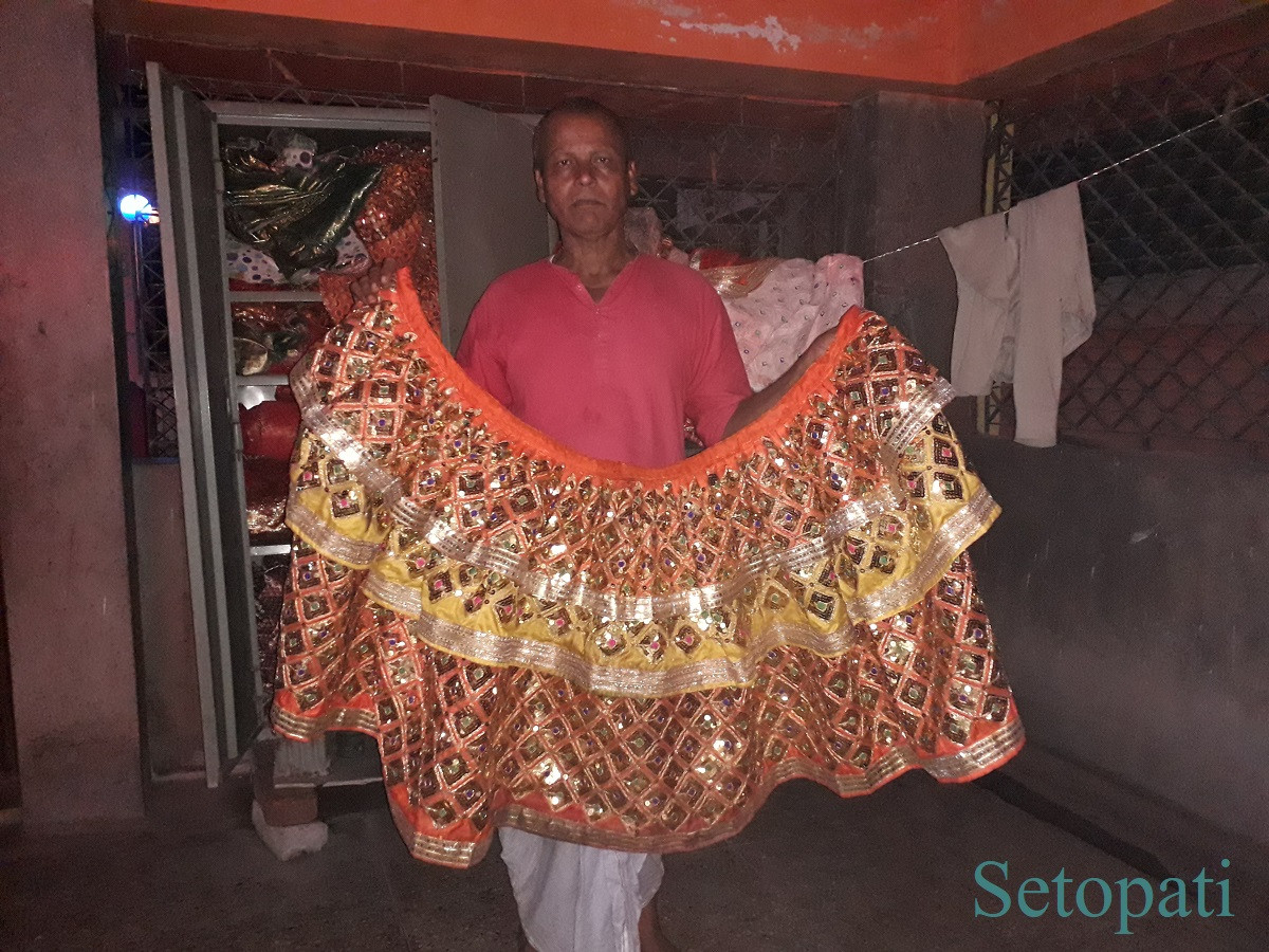 'यी लुगा पनि धेरैजसो भारतीय भक्तजनले नै चढाएका हुन्,' ठूलो लुगा दिल्लीबाट आएको बताउँदै उनले भने, 'पुरानो भएपछि हामी कोशीमा बगाइदिन्छौं। केही नजिकैको हनुमान मन्दिरमा दान गर्छौं।'