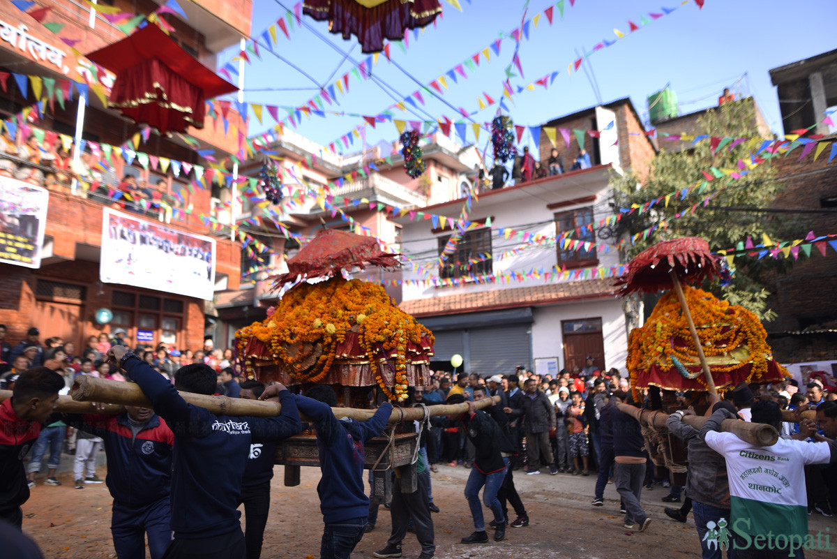 यसैगरी जात्राको दोस्रो दिन बिहानदेखि महालक्ष्मी, आदिनारयण, भैरवनाथ आदिको दिनभर पूजा आराधना गरिन्छ। ब्रत उपासना बस्ने गरिन्छ। कुनै/कुनै भक्तजनहरूले त पूर्णिमाको रातभरि आफ्नो जिउका विभिन्न अंगमा दियो बालेर उपसाना र जाग्राम पनि बस्ने गरेको पाइन्छ। यो दिन जात्राको मु भयव हुन्छ।