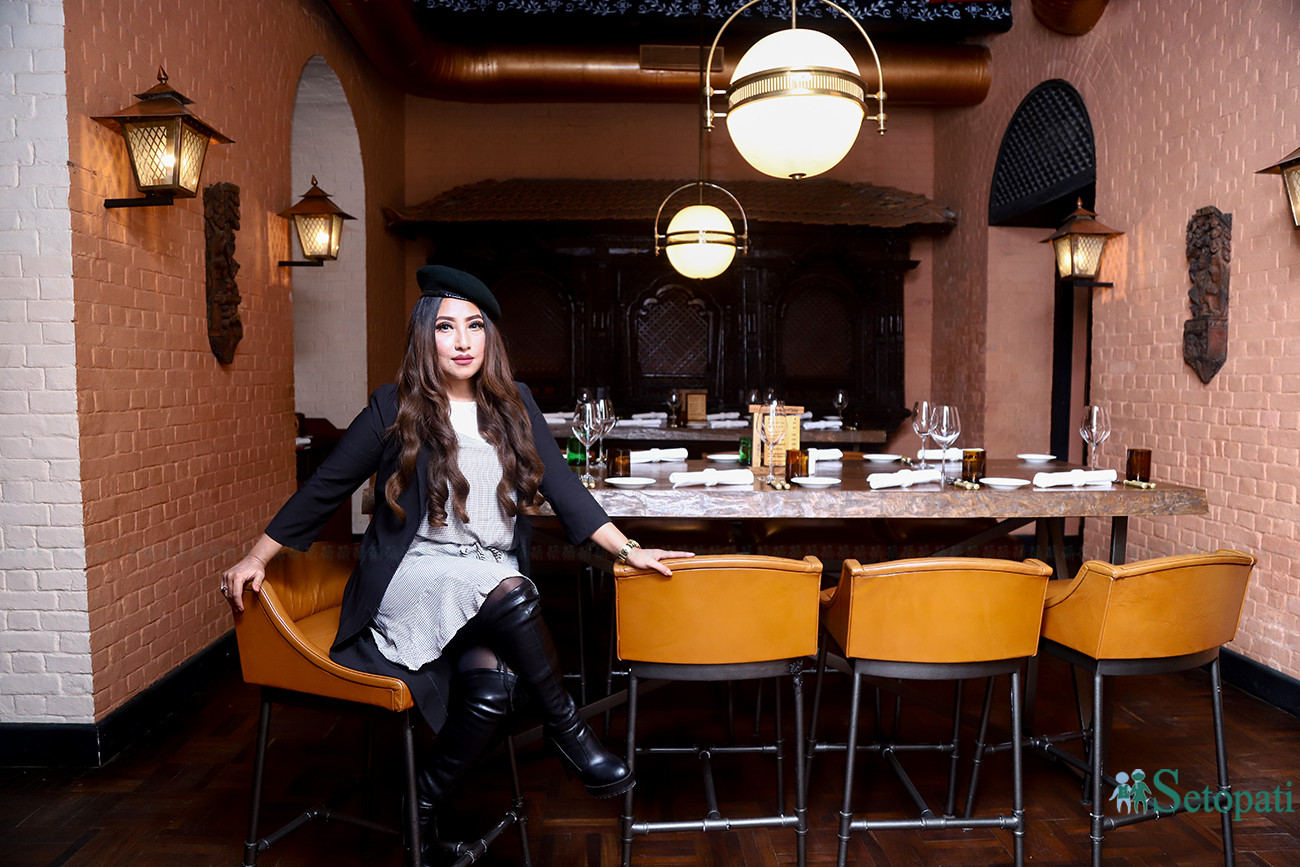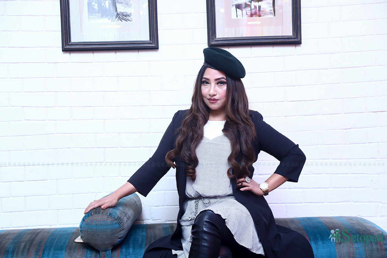 आँखामा बाक्लो गाजलसहित मेकअप गरिएको अनुहार, टपक्क कालो बेरेट टोपी र लामा बुट उनको चिरपरिचित लुक्स हो। पहिरनमा विशेष ध्यान दिने कला दरबारमार्गको एउटा रेस्टुरेन्टमा भेटिँदा उही चिरपरिचित हुलियामा थिइन्।