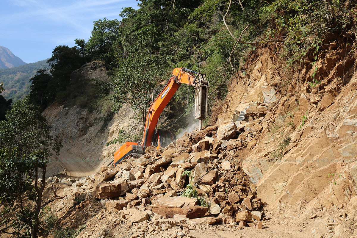 त्यही अनुमतिका आधारमा डोजरले पहाड खन्न थाले।