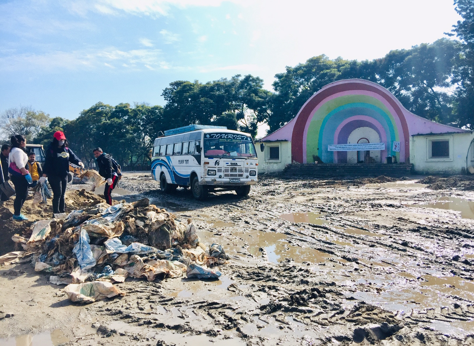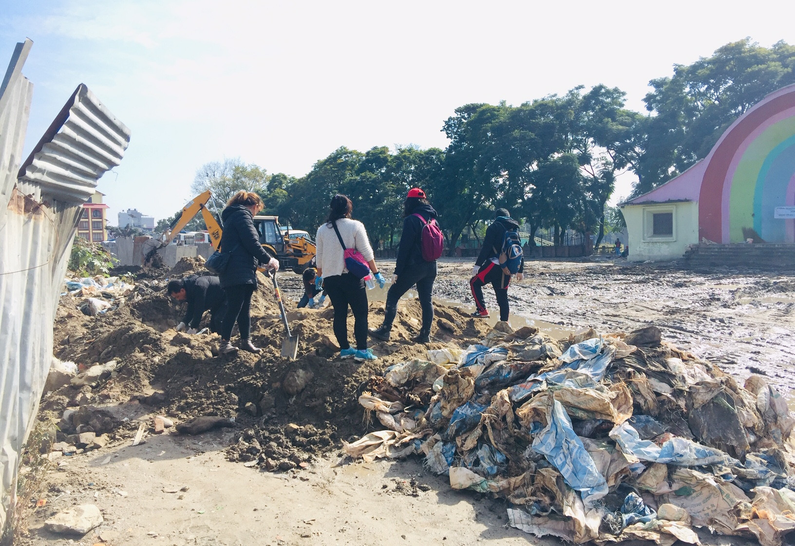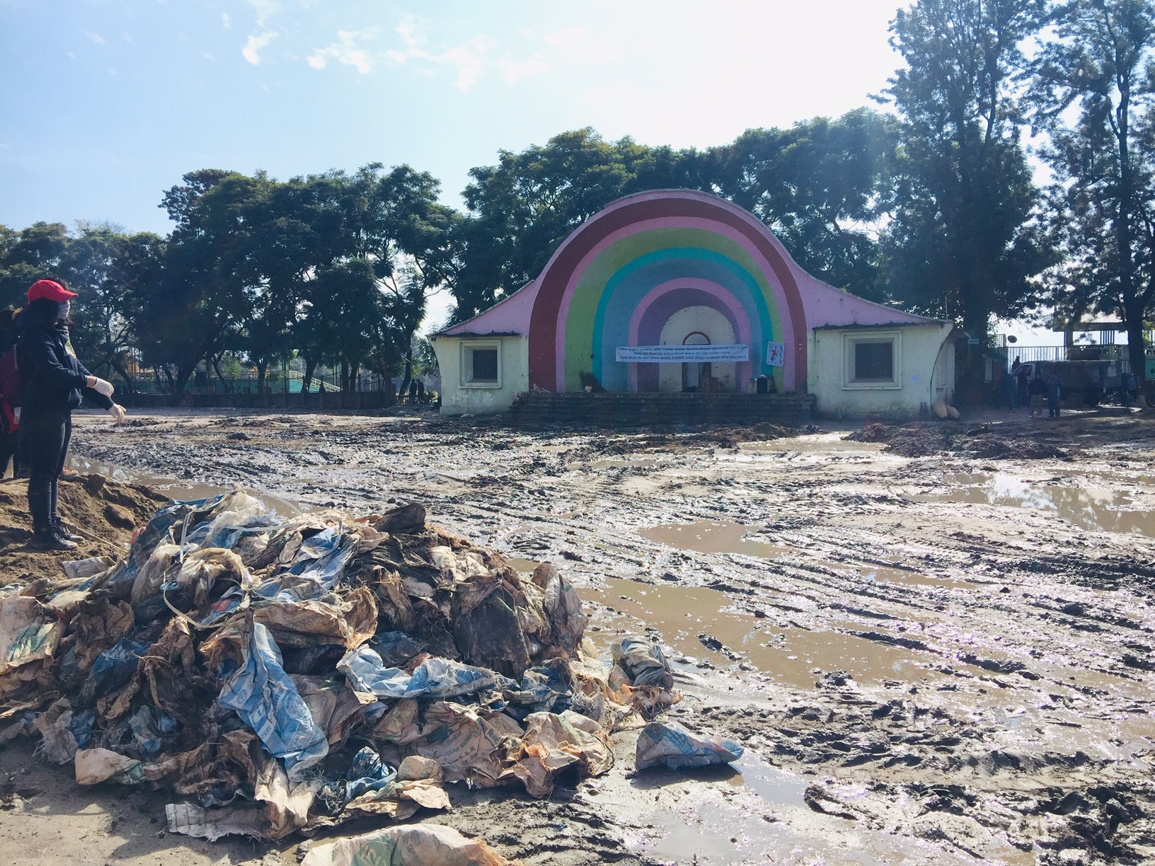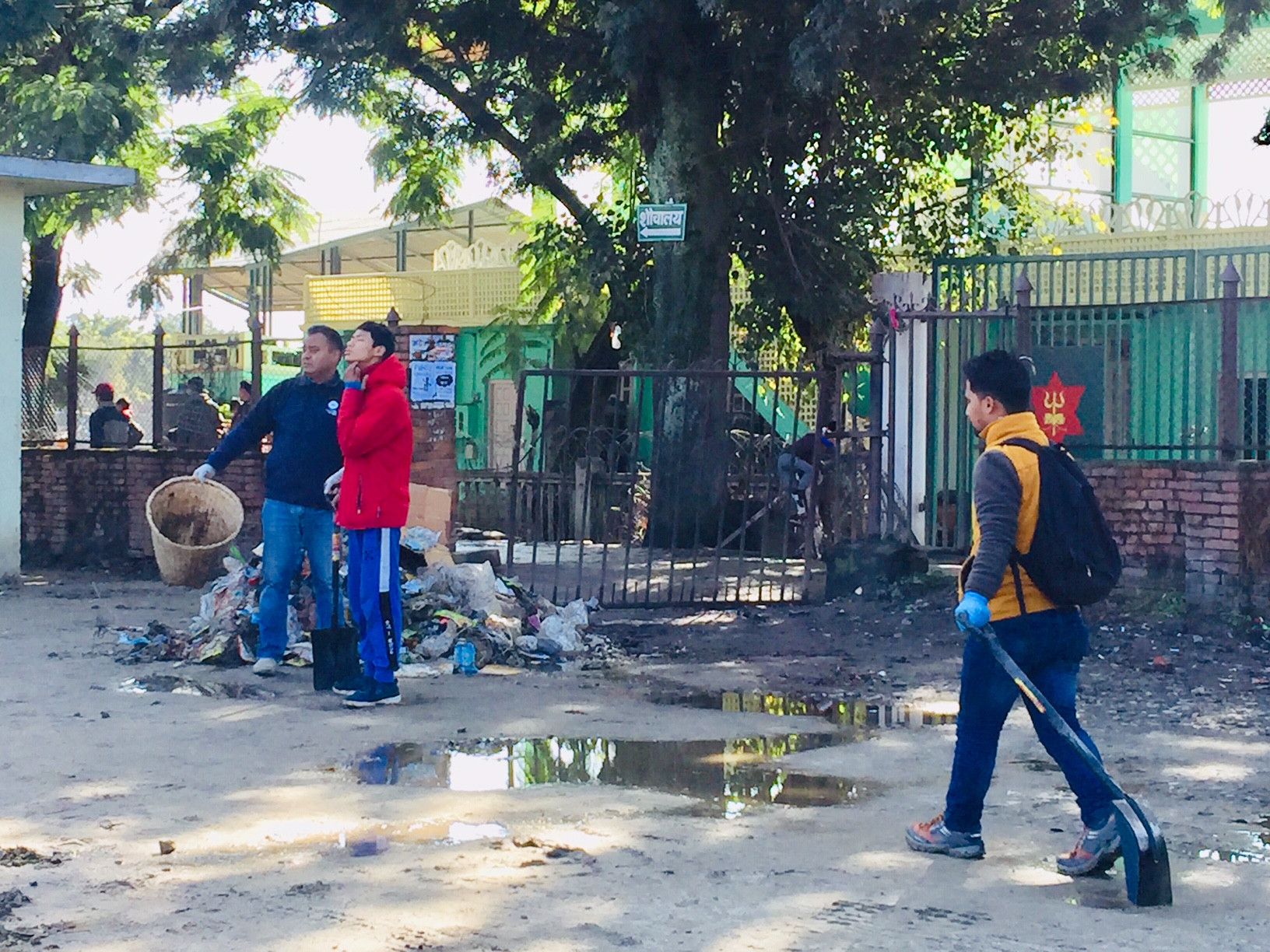 हिलो माटोले यो ठाउँ अस्तव्यस्त थियो। अभियन्ताहरूले उक्त माटो सम्याए। खुलामञ्चअगाडि जमेको हिलो पानी माटोले पुरे। यो सरसफाइ र भुइँ सम्याउन अभियन्ताहरूले ‘जनताको डोजर’ चलाएका थिए।