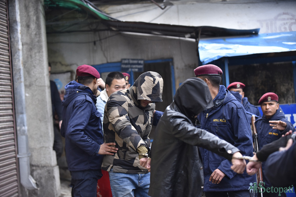 ती चिनियाँलाई ९ वटा घरमा छापा मारेर पक्राउ गरिएको थियो। पक्राउ परेका चिनियाँबाट ७४७ थान मोबाइल, ल्यापटप ३३१, सिपियु ९८, मनिटर ९९, पेन्ड्राइभ २२, सिमकार्ड ३२७ र पासपोर्ट ६७ थान फेला परेको थियो।