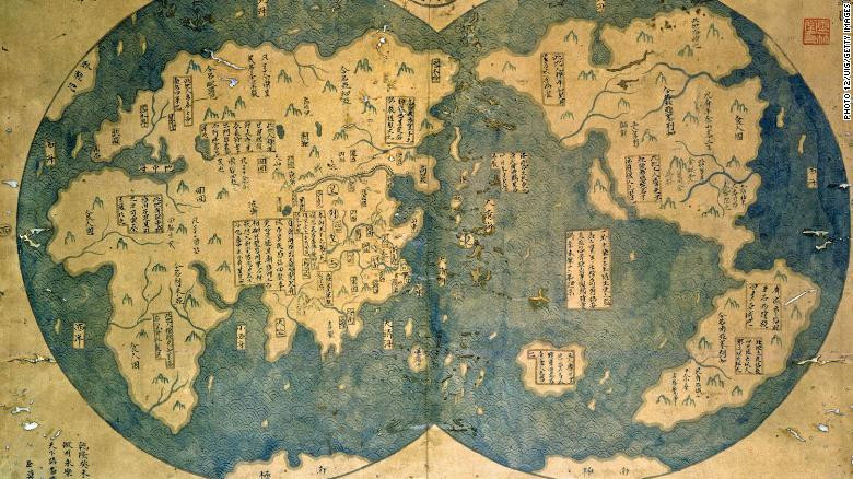 चिनियाँ अन्वेषक झेङ हे (१३७१-१४३५) ले संकलन गरेको विश्व नक्सा। स्रोत: सिएनएन