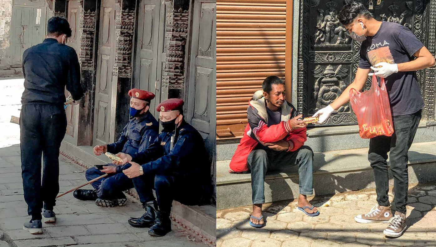 उनीहरू अहिले पनि उसैगरी जम्मा हुन्छन्। प्रयोजन भने फरक छ। उनीहरू लकडाउन बेला ड्युटीमा खटिएका प्रहरी, अलपत्र व्यक्ति र टोलका जनावरहरूको सहयोगमा खटिएका छन्।