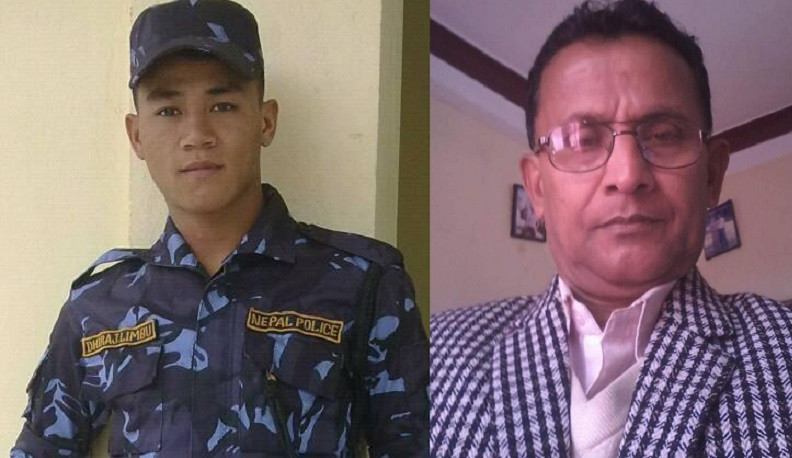'घर बाहिर नजाऔं है..कोरोनाले समाउला..' का गायक प्रहरी जवान धिरज लिम्बू (बायाँ) र रचनाकार नारायण डंगोल।