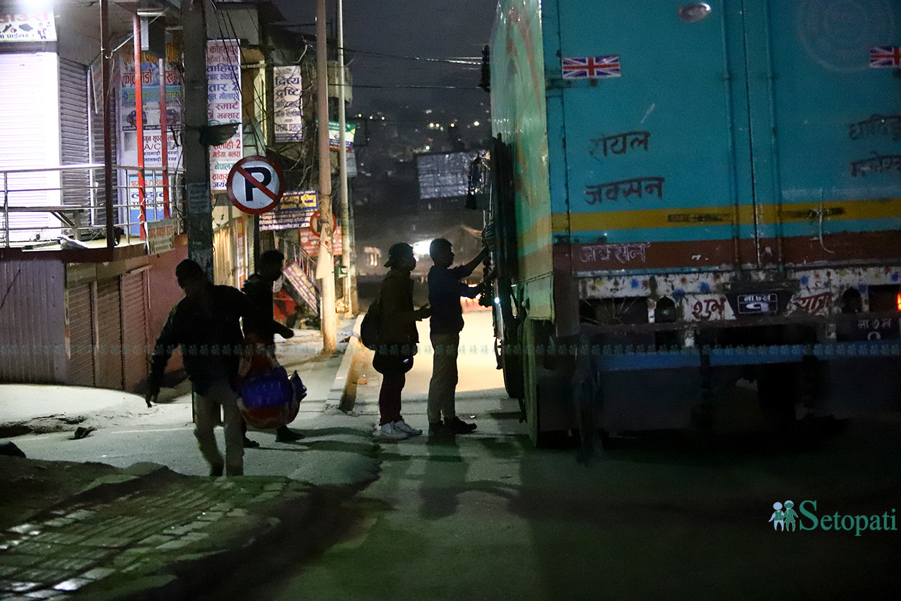 आँखा खुल्दा ट्रक छोपेको त्रिपाल हटाइँदै थियो। गुनगुन आवाज पनि सुनियो। एकअर्कालाई नदेखिने अँध्यारो भइरहेका बेला एक्कासि उज्यालो किरणले आँखा चर्कायो। अगाडि प्रहरी रहेछन्।