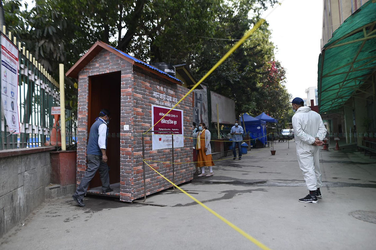 कोरोनाभाइरस रोकथाम तथा नियन्त्रणका लागि प्रयासस्वरुप यो बुथ बनाइएको मञ्चले जनाएको छ।