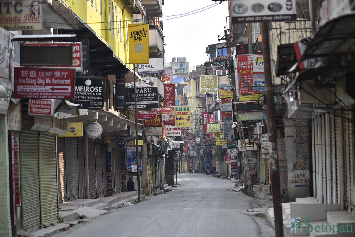 तस्वीरमा हेर्नुहोस् २०७७ सालको पहिलो दिन ठमेल र दरवारमार्गको दृष्य।