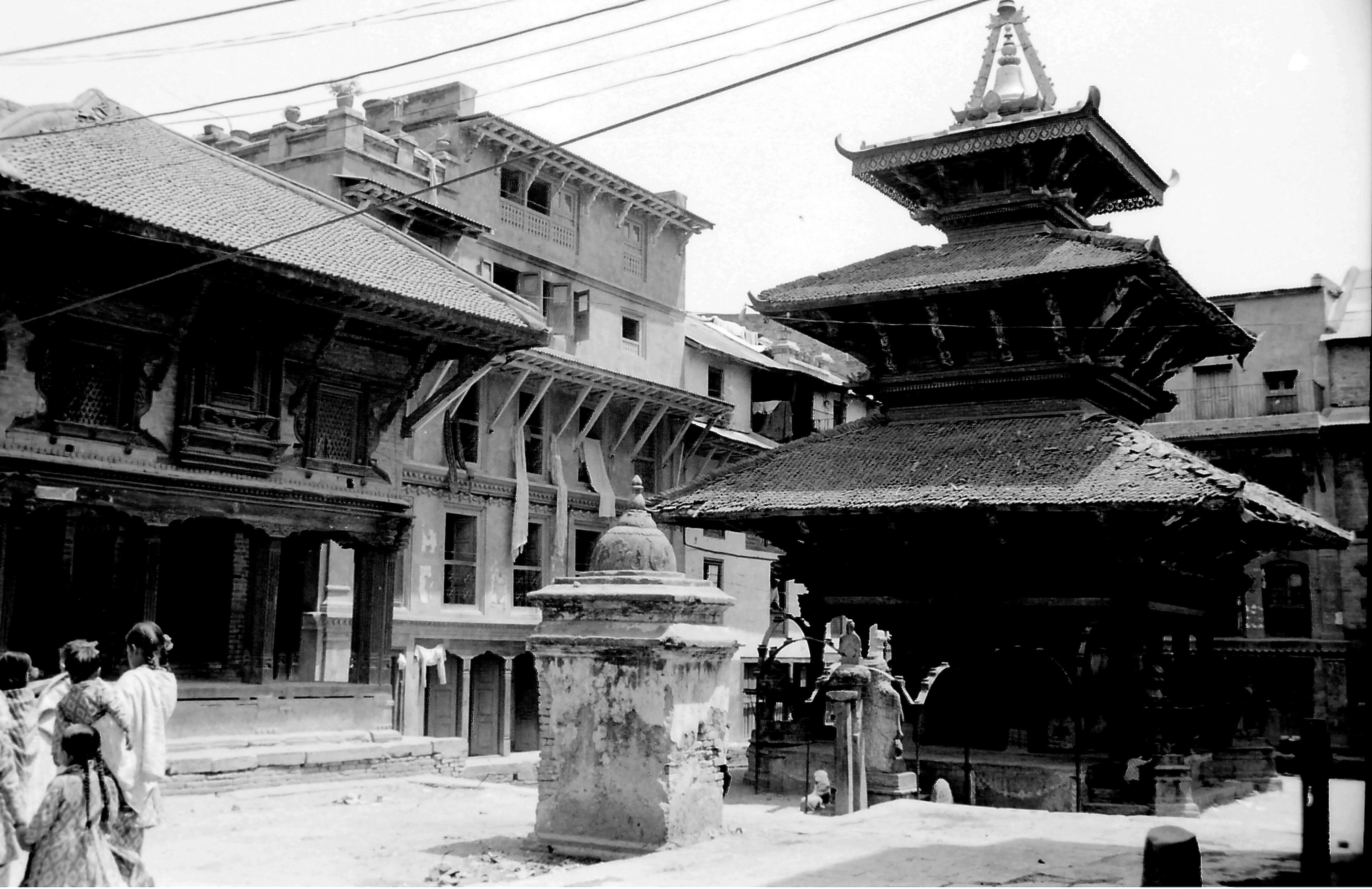 काठमाडौंको अट्कोनारायण मन्दिर (२०३० साल)। टोड रग्सडेलले खिचेको यो तस्बिर हामीले सुनील उलकको संकलनबाट लिएका हौं।