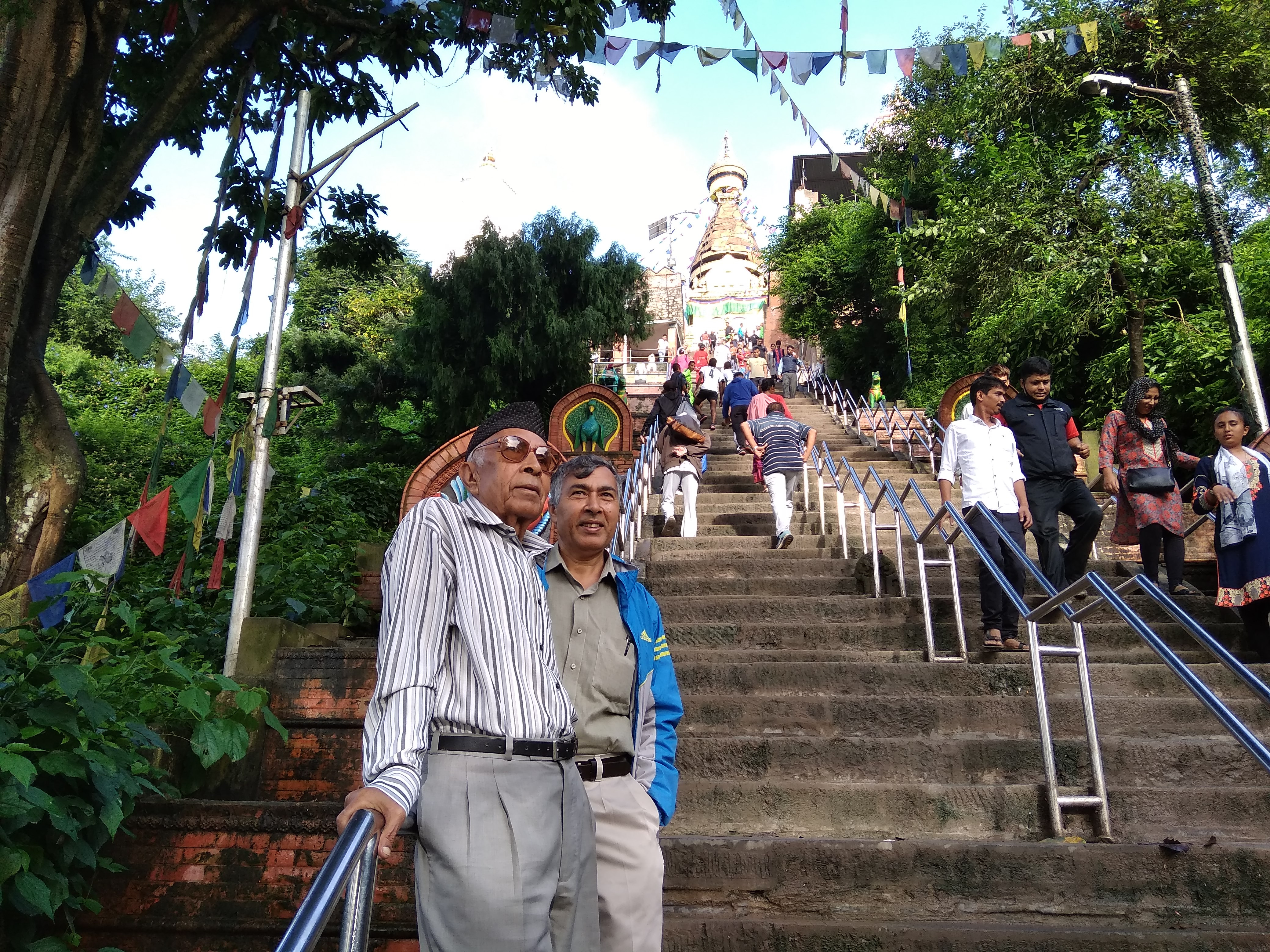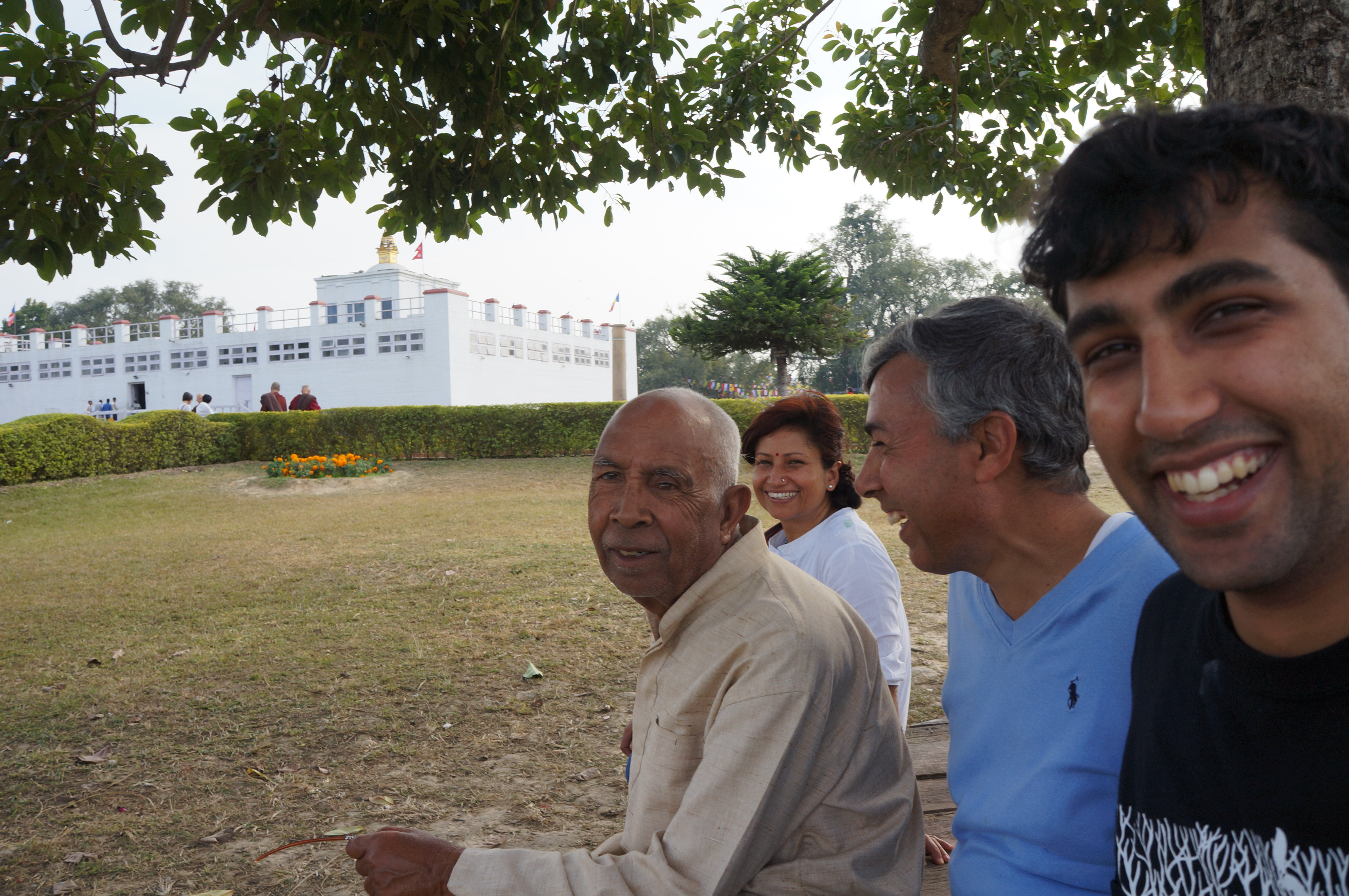 लुम्बिनी भ्रमणमा जाँदा चित्रकार हरिप्रसाद शर्मा आफ्ना छोरा विष्णु, बुहारी र नातिसँग। तस्बिर: पारिवारिक संकलन