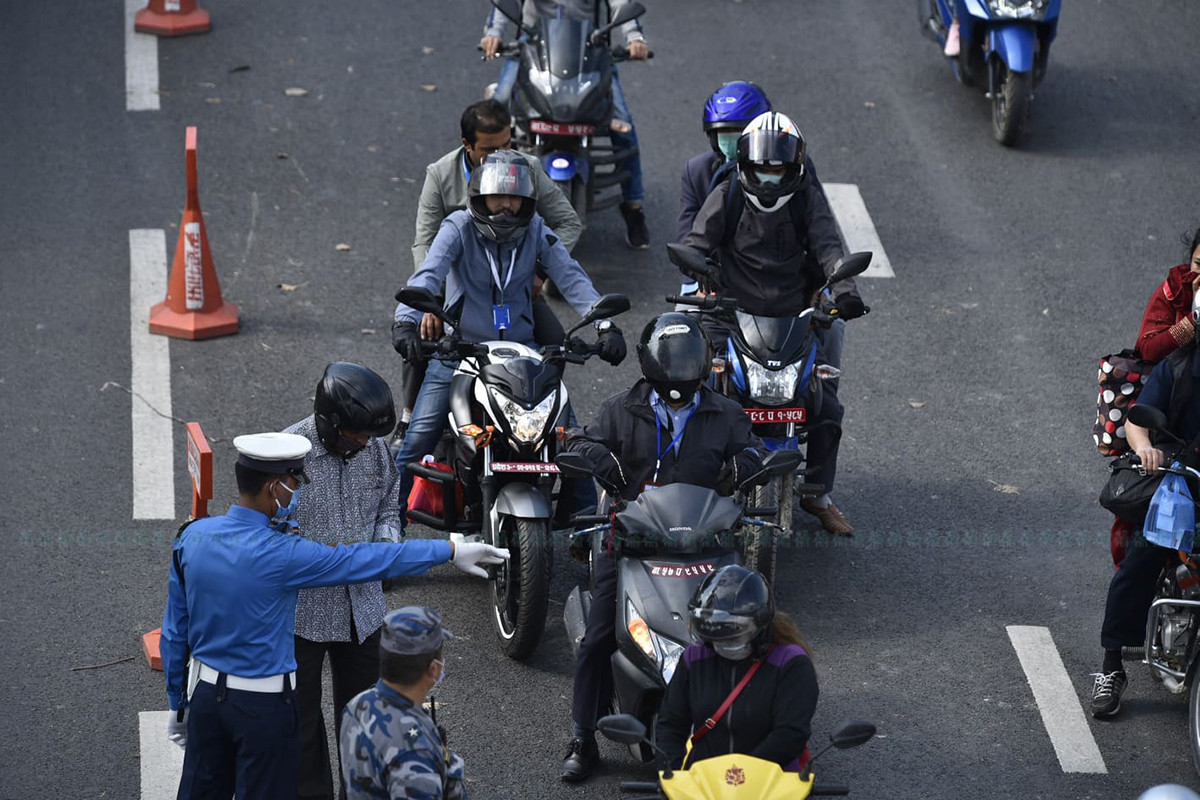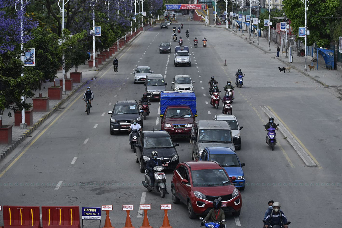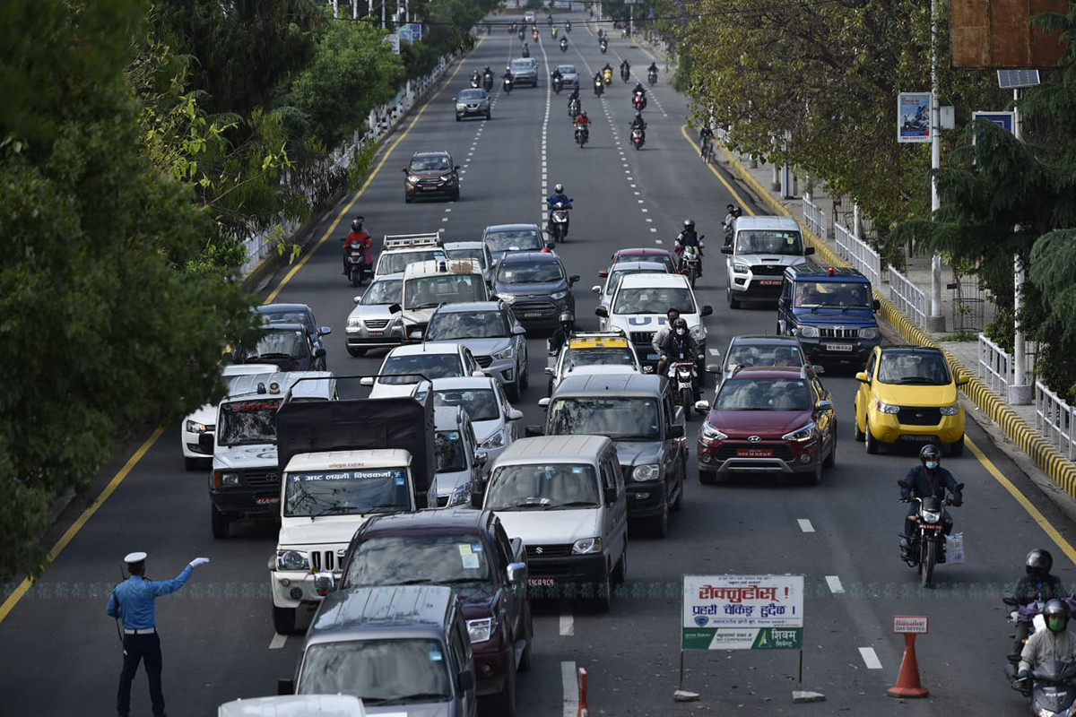 काठमाडौंमा लकडाउन केही खुकुलो भएको संकेत सडकमा देखिन्थ्यो। ट्राफिक प्रहरीले पनि सवारी साधन सञ्चालनका लागि टाइम कार्ड लागू गरेको छ।