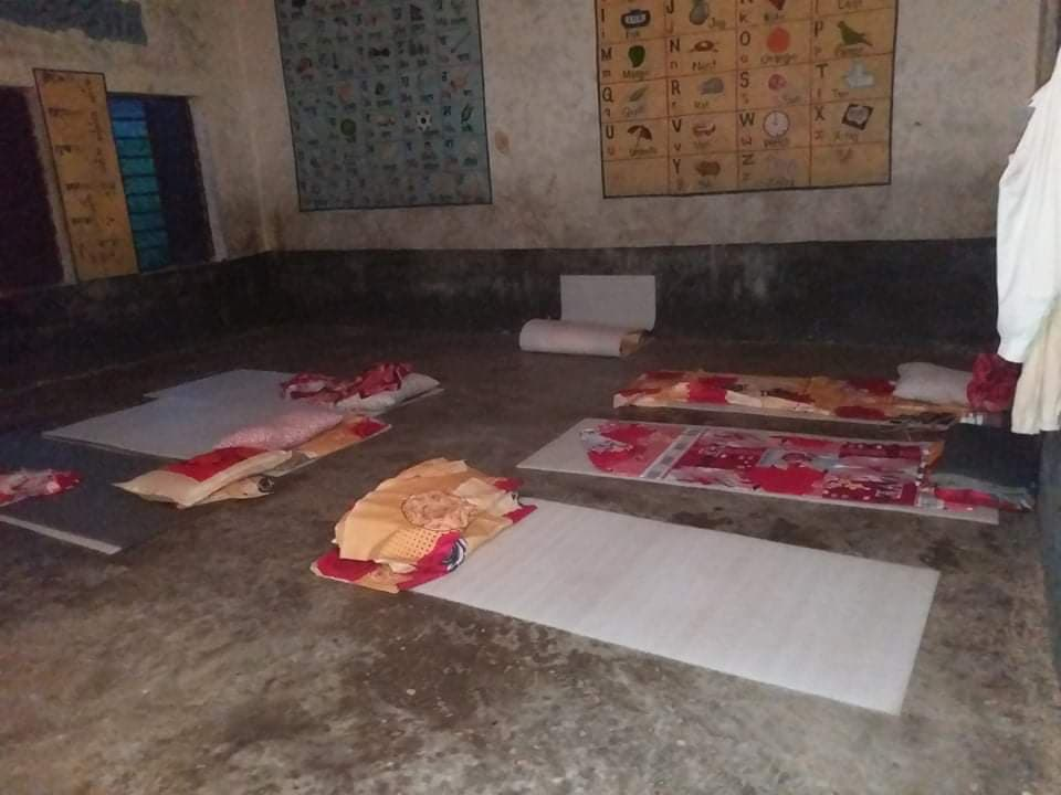 एउटै कोठामा ८ जनासम्मलाई ठाउँ पुग्छ। उनीहरूलाई सुत्ने खाट छैन। कतिले विद्यालयकै डेस्कबेन्चलाई जोडेर खाट बनाएर सुत्ने गरेका छन्। पालिकाले सामान्य बिछ्यौना दिएको छ। त्यही कपडा ओछ्याएर आठ जना मानिस एउटै कोठामा पल्टिन्छन्।