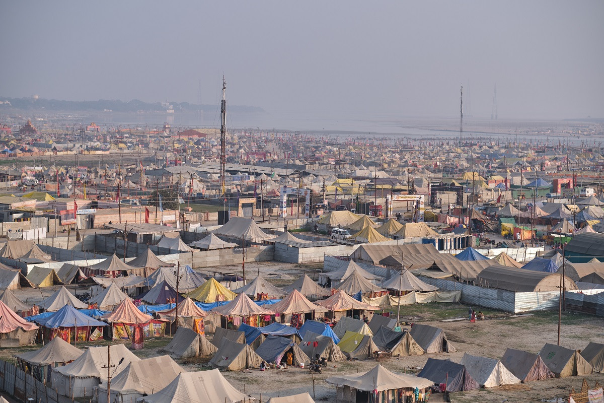 मेलाको तयारी क्रममा दसौं हजार अधिकारीले महिनौं लगाएर गंगा नदी किनारमा एउटा अस्थायी विशाल सहरै बसालेका हुन्छन्। माथिबाट हेर्दा पानीका साना-ठूला धर्काले छुट्टयाएको यो आफैंमा बुट्टेदार बस्ती बन्न पुग्छ। त्यतिले नपुगेर मेलालाई नै ध्यानमा राख्दै थुप्रै टेन्ट, झोलुंगे पुलदेखि फलाम ओछ्याइएका सडकहरूसम्म जताततै तयार पारिएका हुन्छन्।