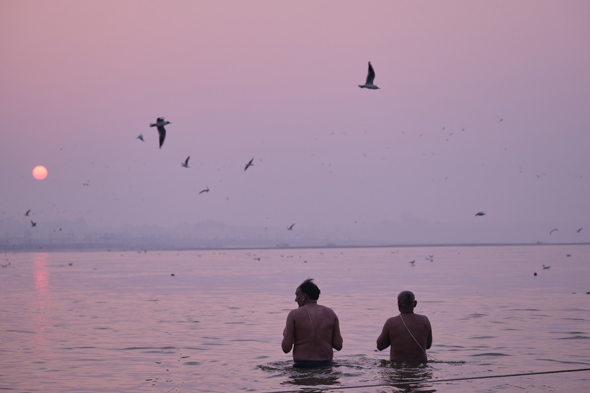 ठिक त्यति बेला नदी किनार प्रार्थना गरिरहेका तीर्थालुहरूको भीडमाथिबाटै एक हुल चराहरू उडेर जान्छन्। तर, त्यहाँ कसैलाई कसैको परवाह छैन।