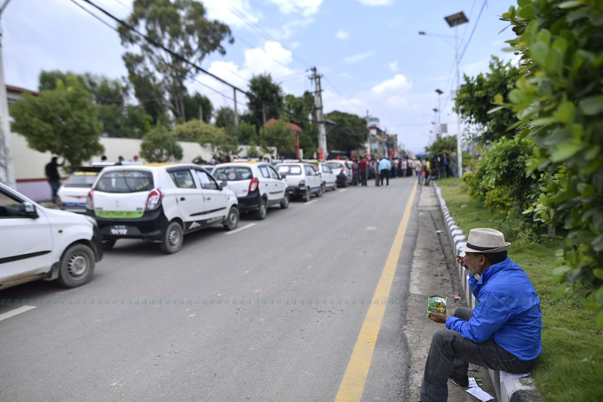 ‘चालकहरू ट्याक्सीसहित थुप्रो मात्रामा निस्किएका छन्। उहाँहरूले ऋण मिनाह गर्नुपर्ने, मारमा परेको भन्दै विभागमा आउनुभएको हो,'महानगरीय ट्राफिक प्रहरी महाशाखाका एसपी वामदेव गौतमले भने,'ट्याक्सीहरूलाई बाहिर राखेर केहीलाई भित्र जान दिइएको छ।'