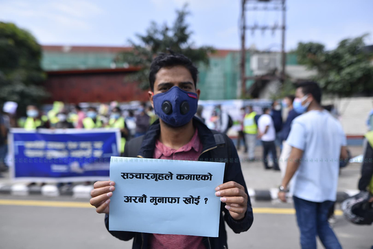 ‘हामीले ५१ मिडियामा गरेको सर्वेक्षणमा १५ प्रतिशत पत्रकार र कर्मचारीको जागिर गरेको पाएका छौं। तलब नपाउने, तलब कटौती हुने त झन् धेरै हुनुहुन्छ,’ महासंघका अध्यक्ष आचार्यले भने,‘मिडिया सञ्चालकलाई त्यसो नगर्न दबाब दिन प्रदर्शन गरेका हौं।’