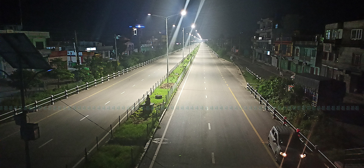 ६ लेन सडक निर्माणको योजनामा सडकको डिभाइडरमा सौर्यबत्ती जडान गर्ने सम्झौता भए पनि यसअघि जडान गरिएका सौर्यबत्ती टिकाउ नभएपछि नगरपालिकाले विद्युत महसुल बुझाउने सम्झौता गरेपछि विद्युतीय बत्ती जडान गरिएका हुन्।