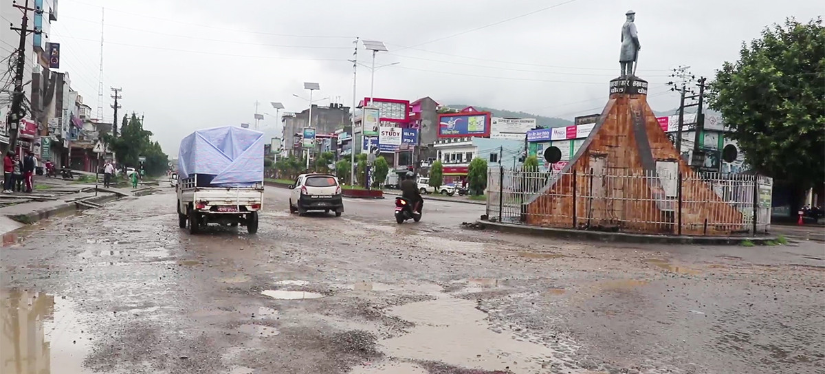 प्रदेशको राजधानीमै र पूर्वपश्चिम राजमार्गको सबभन्दा व्यस्त रहने राजमार्ग चौराहदेखि गोलपार्क सम्मको सडक भत्किएर सरकारलाई नै गिज्जाइरहेको थियो।