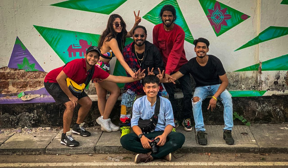 भारतीय र्यापर इमिवे बन्टाइ र अरू साथीहरूसँग निशान भुजेल। तस्बिर सौजन्यः निशान भुजेल