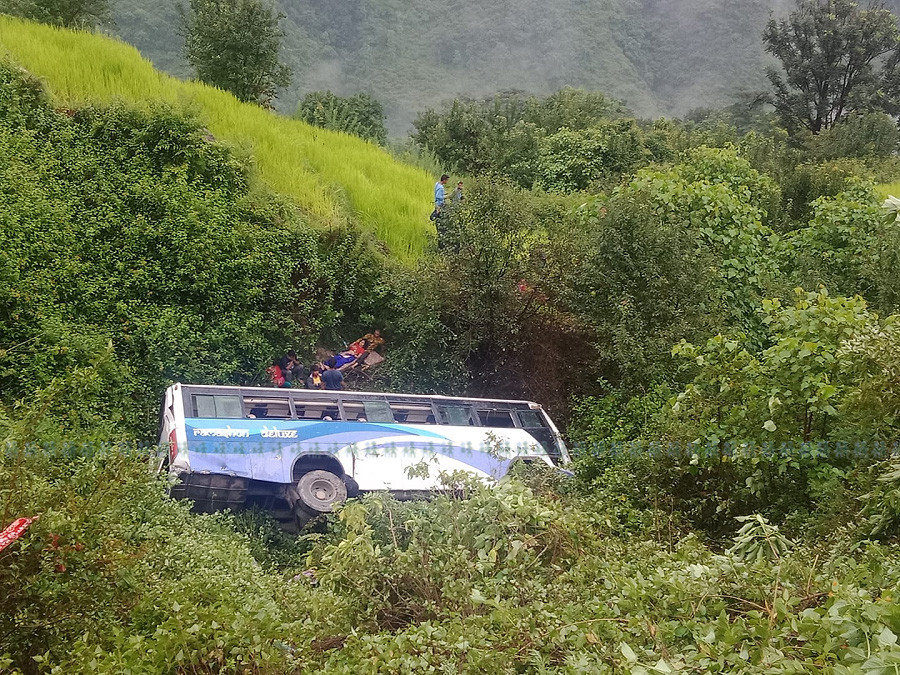 बस सडकबाट एक सय मिटर तल खसेको छ।