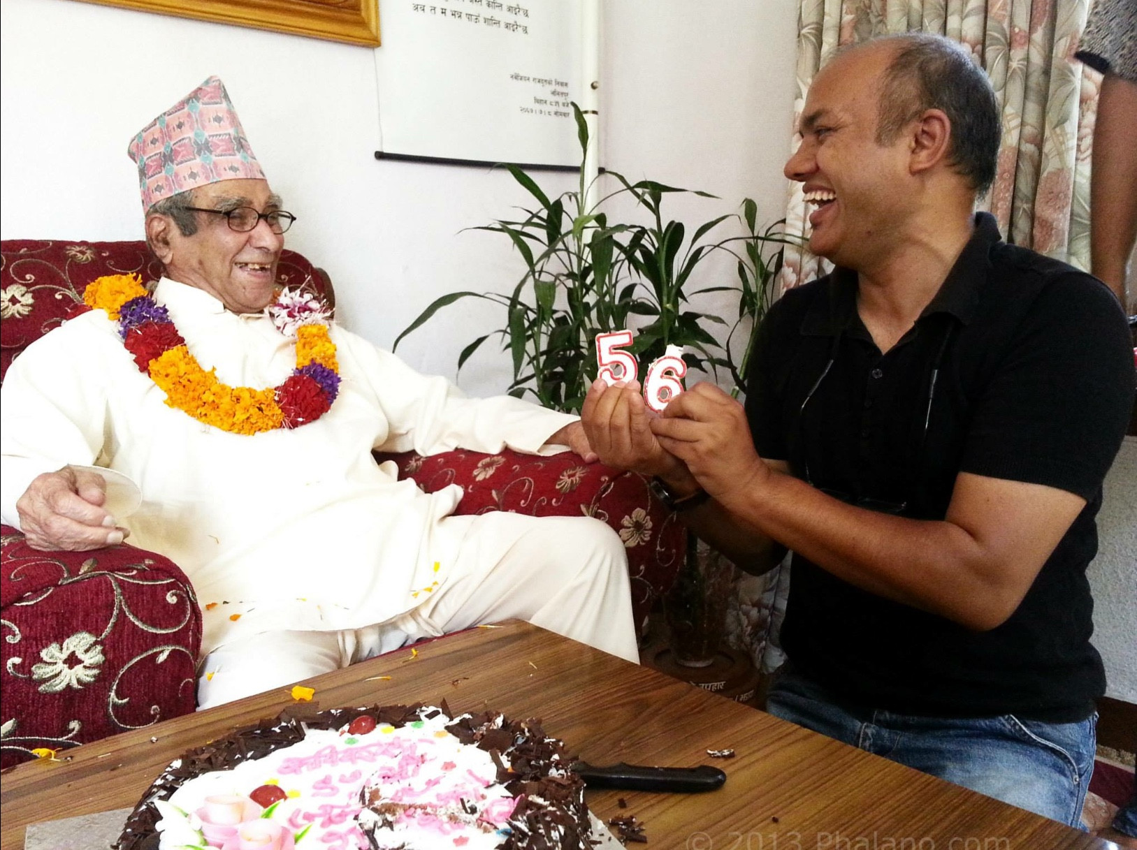 केही वर्षअघि दुई किलोको ब्ल्याक फरेस्ट केकका साथमा हाम्रो टोली नै लैनचौर निवास पुगेको थियो। साथमा थिए नेपथ्यका गायक अमृत गुरुङ, गीत–संगीतको ‘पलेँटी’ शृंखला चलाउने संगीतकार आभाष, नेपथ्य तथा पलेँटी व्यवस्थापन गर्ने नेपालयका किरणकृष्ण श्रेष्ठ अनि कान्तिपुरका प्रधानसम्पादक नारायण वाग्ले।