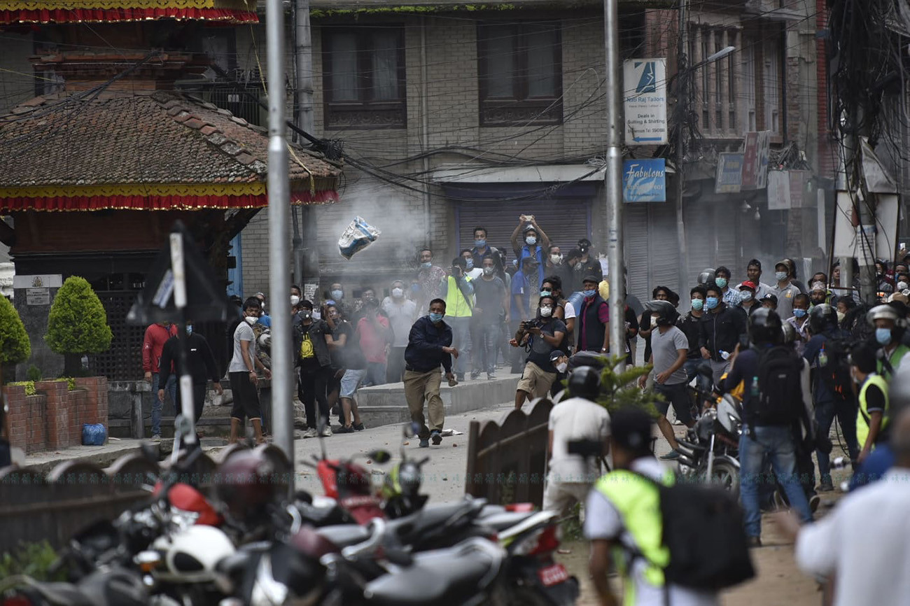 पाटनमा बिहीबार भएको झडपका झलकहरू। (सबै तस्बिर: नारायण महर्जन/सेतोपाटी)